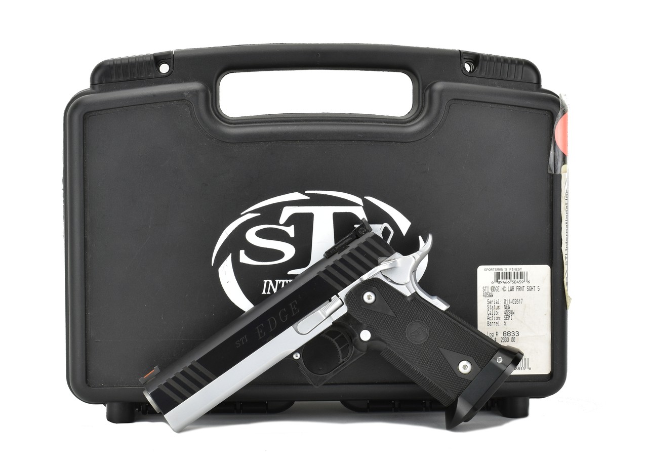 STI 2011 Edge .40 S&W caliber pistol. 5” Double stacked model with blued and chrome finish. Excellent condition with box.