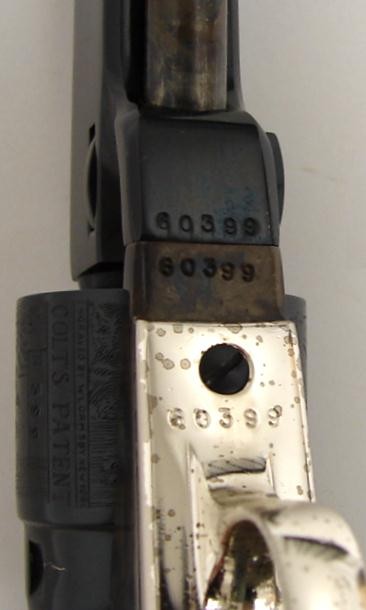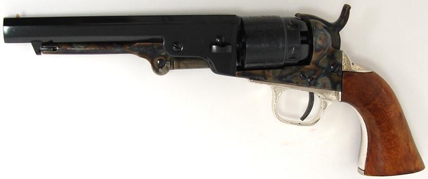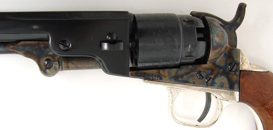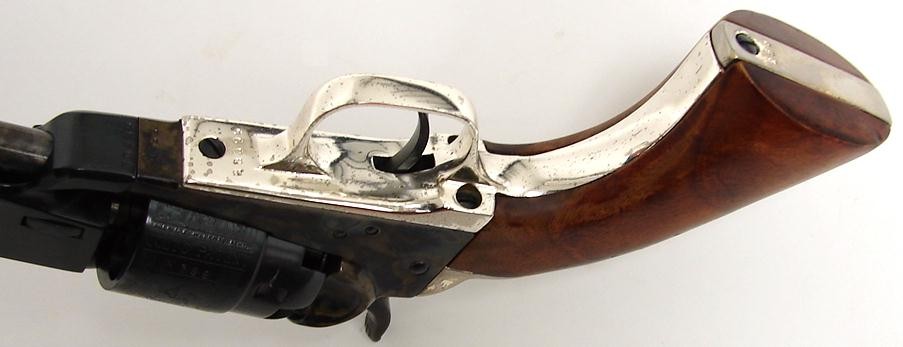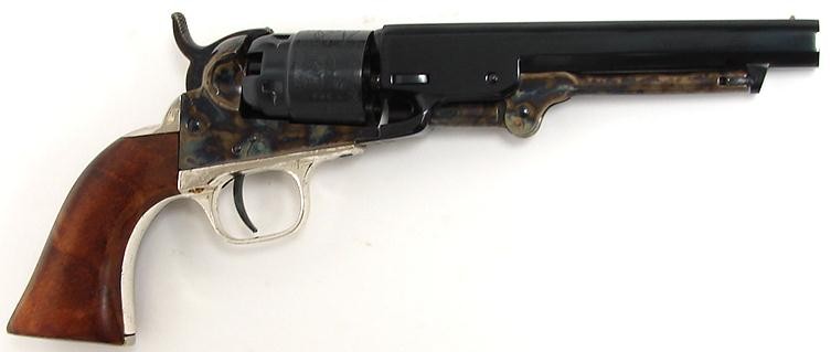 Colt Pocket Navy .36 caliber Signature Series revolver. Has factory defect on grip strap. Bubbled nickel.