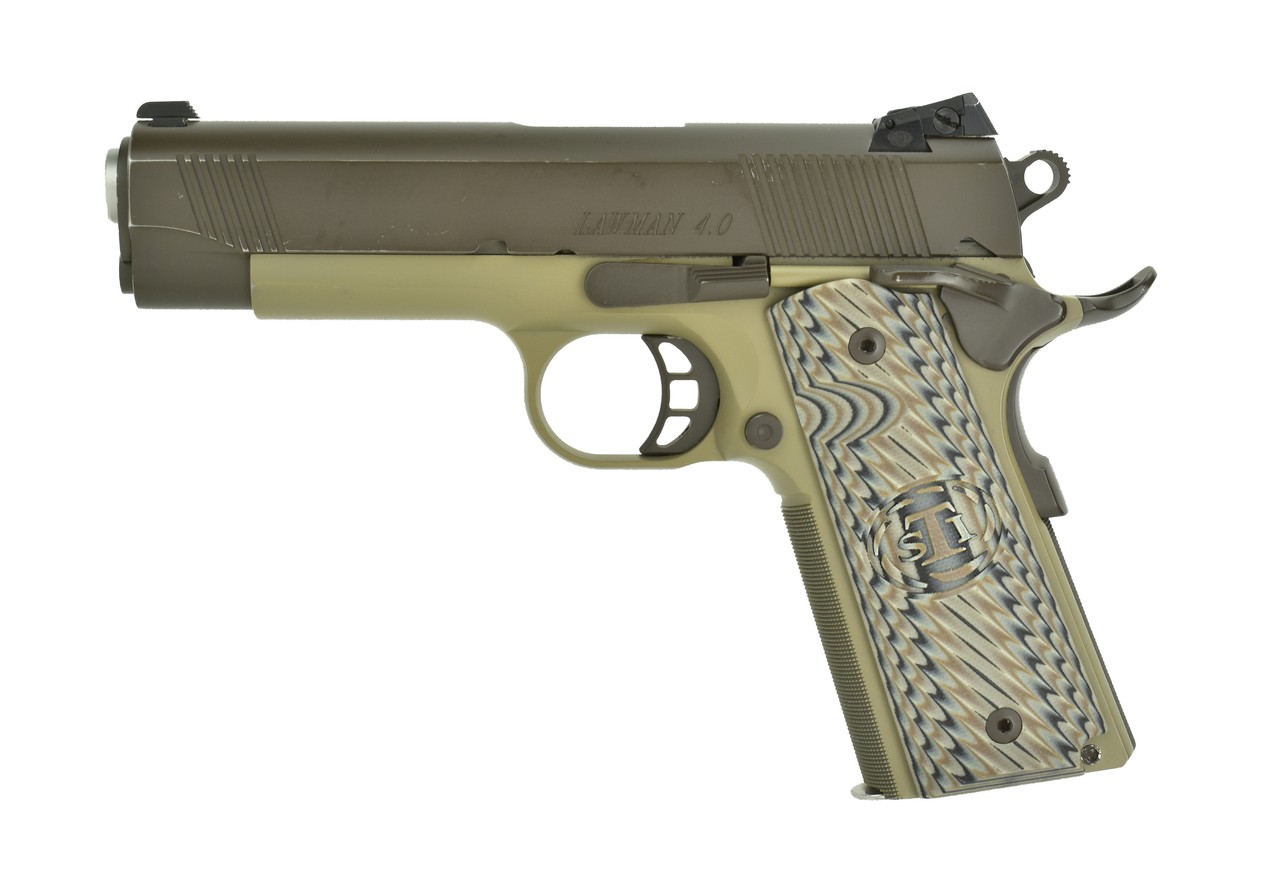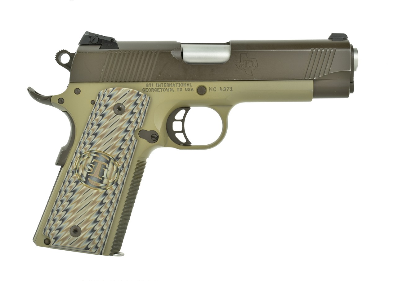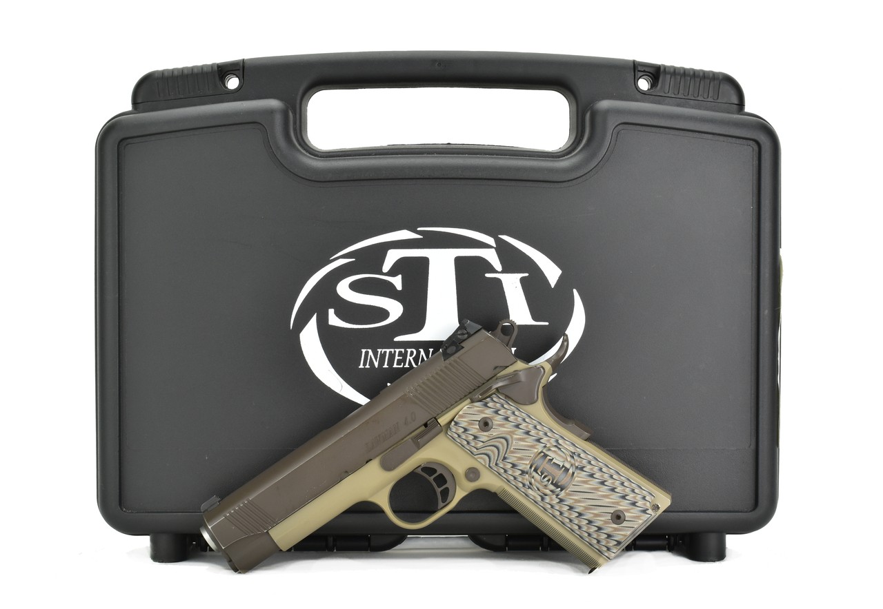 STI Lawman 4.0 .45 ACP caliber pistol. 4” Model with brown and tan finish. Shows some holster wear otherwise very good overall condition with box.