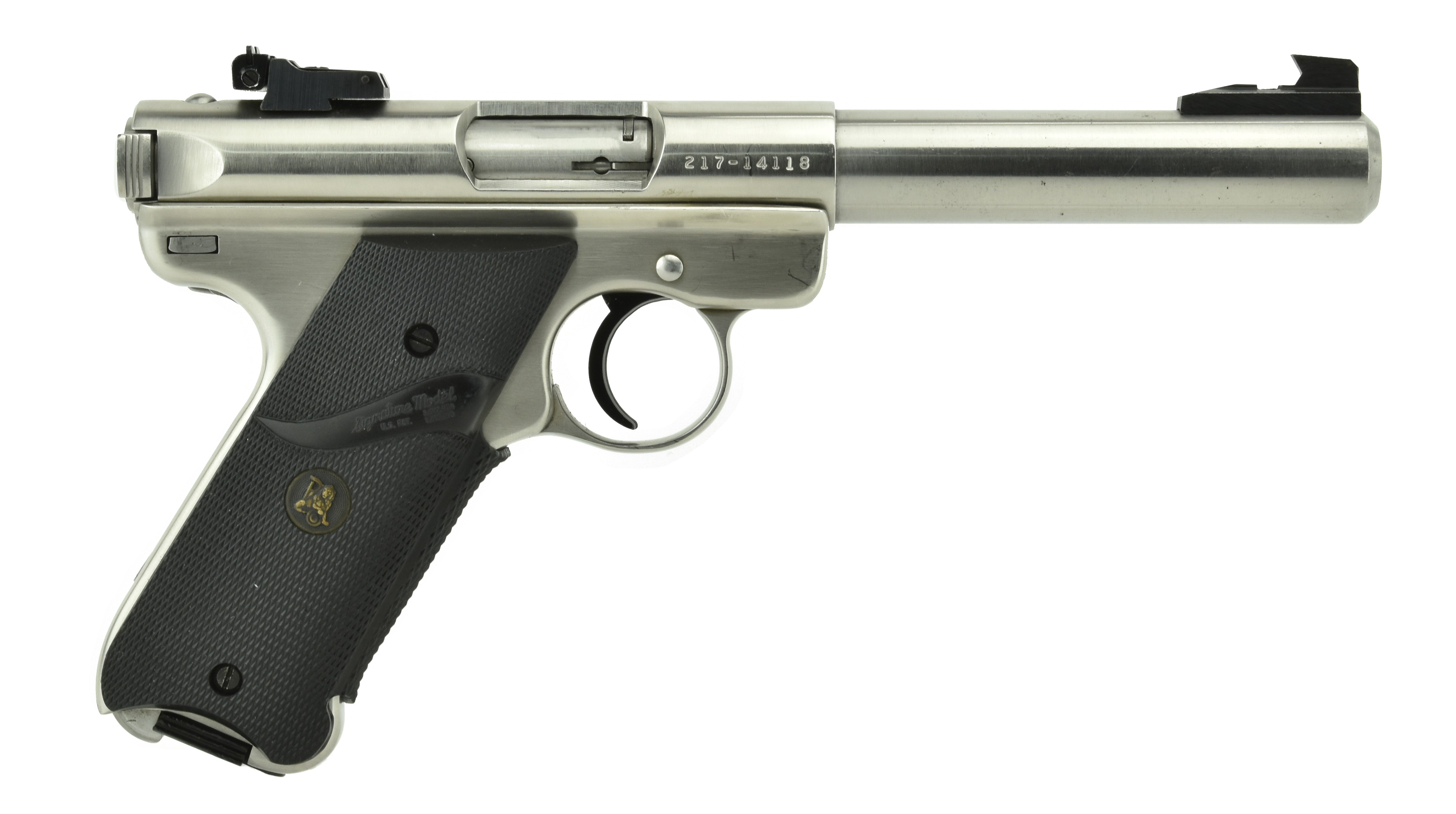 Ruger MKII Target .22 LR Caliber Pistol. Stainless Target model with bull barrel. Very good condition.