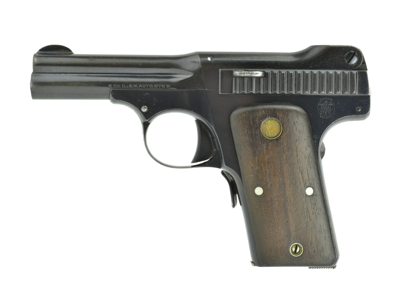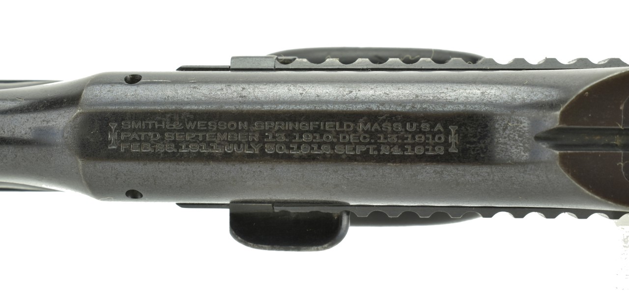 Smith & Wesson Model 1913 .35 S&W caliber pistol. (No ammo is available for this and .32 caliber will not interchange). Bore is excellent. Gun has approximately 93-95% blue. Action work perfectly. Grips are dark due to being oiled over the last 100 years. Priced to sell!