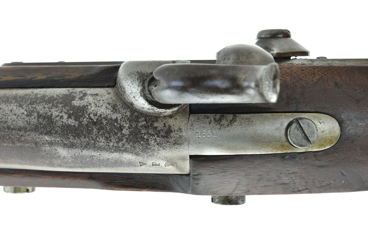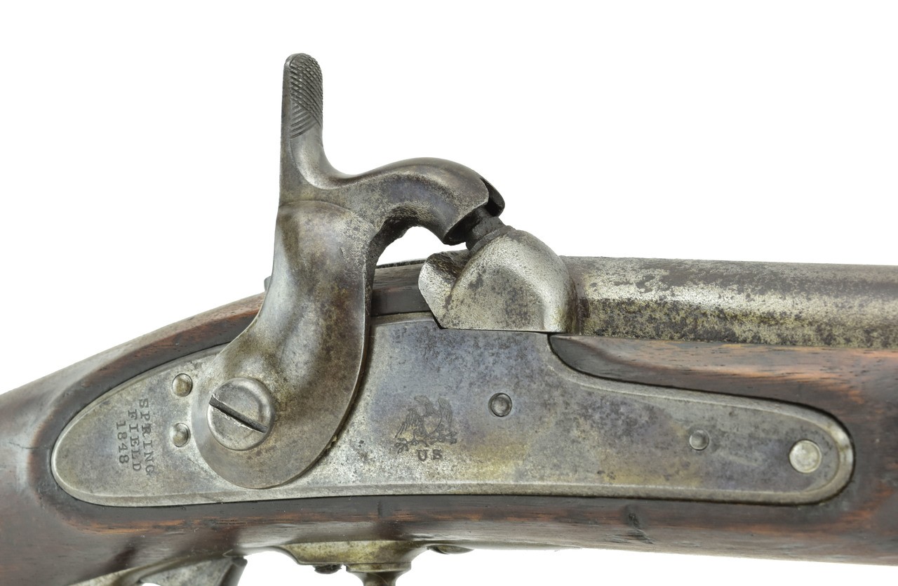 U.S. Springfield Model 1842 musket. These were the first musket to be made at Springfield Armory using the percussion system, Metal has a gray patina. Lock is dated 1848 and barrel is dated 1851. Stock is in good shape, cartouches are present. Stock does show handling wear. There are two “X”s carved into the wood. Overall good looking model 1842!