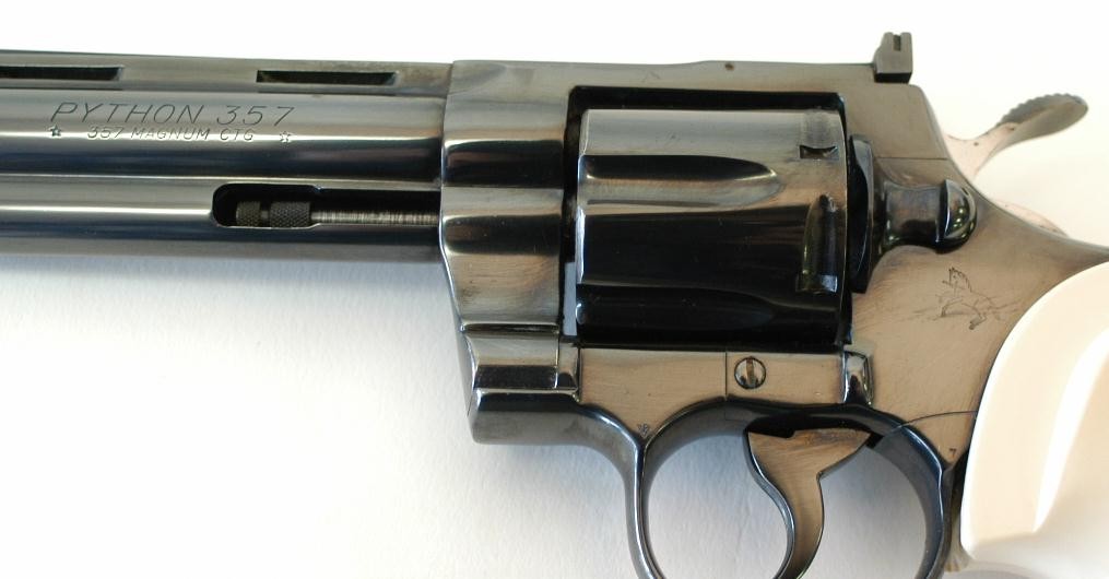 Colt Python 357 Magnum caliber revolver with imitation ivory grips