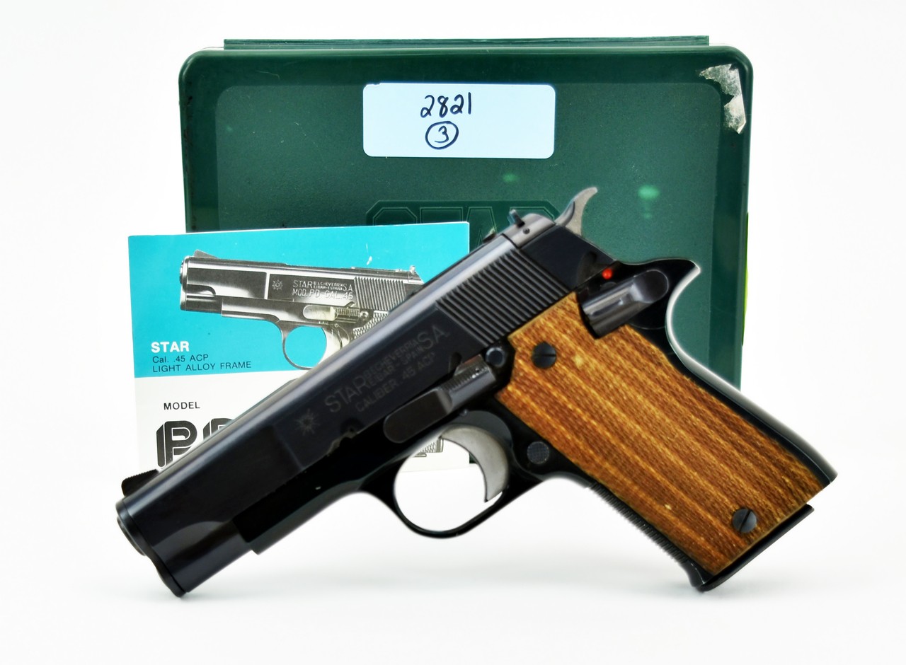 Star PD .45 ACP caliber pistol. Compact model with blue finish. Excellent condition with box.