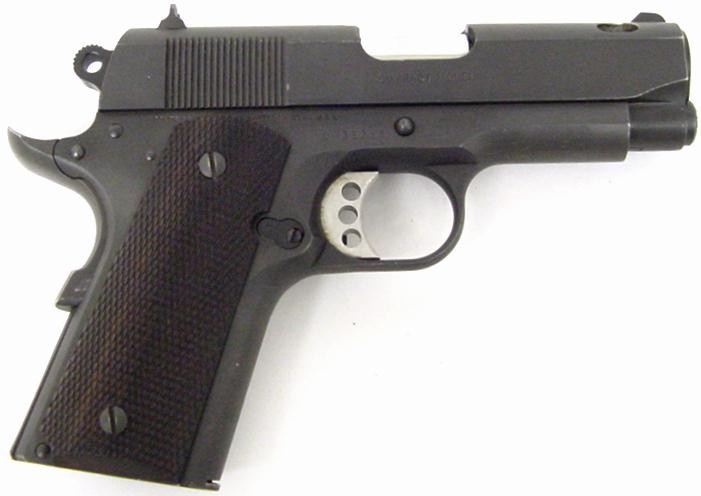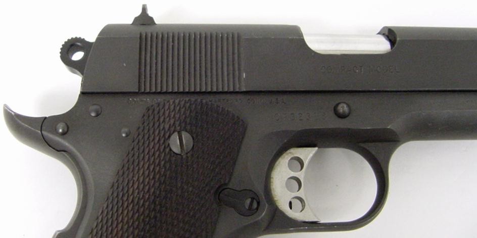 Colt 1991 Compact .45 ACP caliber pistol customized with ported barrel. Pre-owned. (c2019)