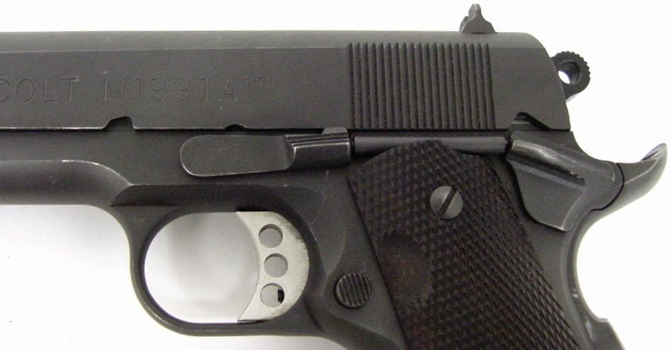 Colt 1991 Compact .45 ACP caliber pistol customized with ported barrel. Pre-owned.