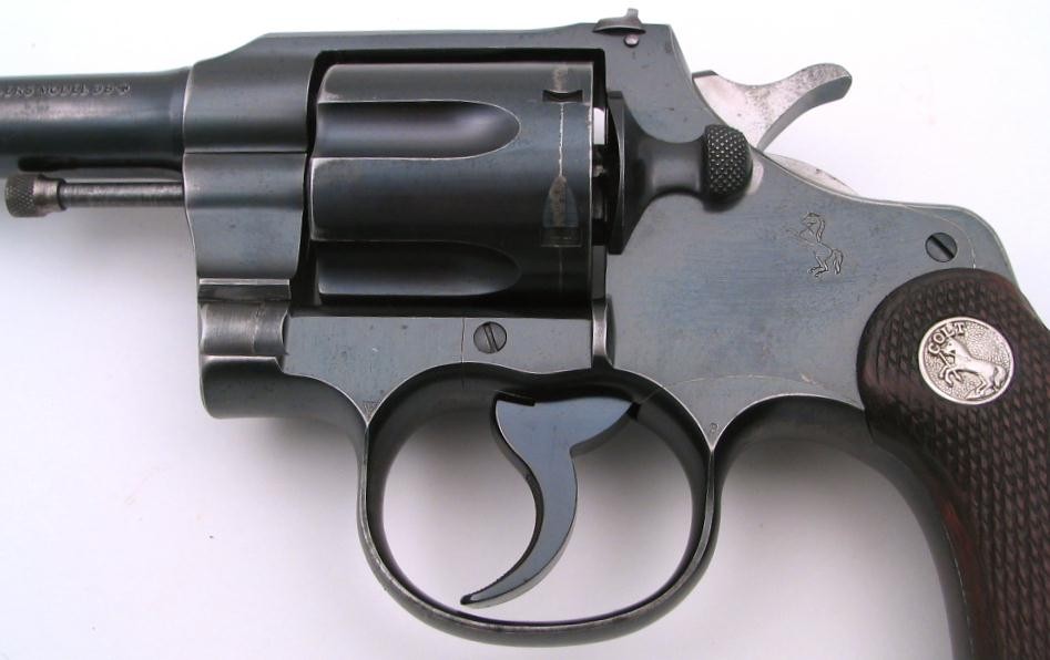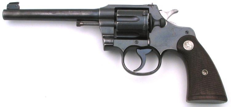 Colt Officers Model .38 Special caliber Pre-War revolver. Flat top target.