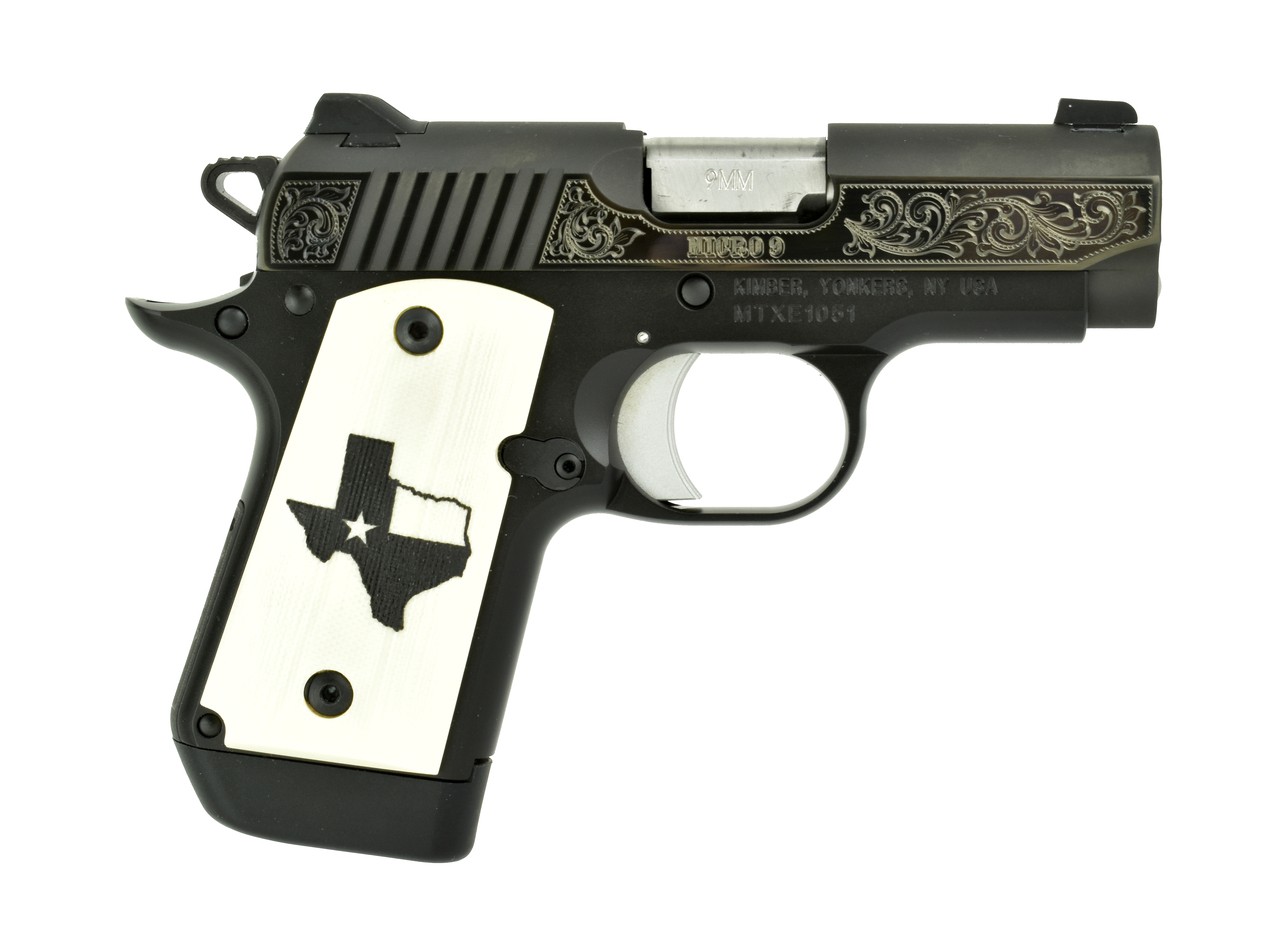 Kimber Micro 9 “Texas Edition” 9mm caliber pistol. Limited Edition with scroll engraving and polished blue finish. New.