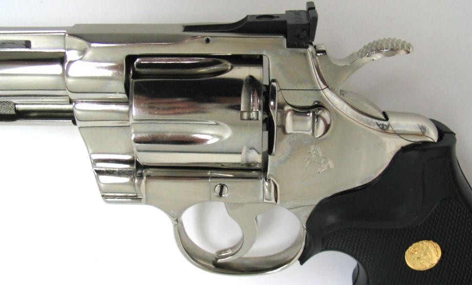 Colt Python .357 Magnum caliber nickel plated revolver in excellent condition.