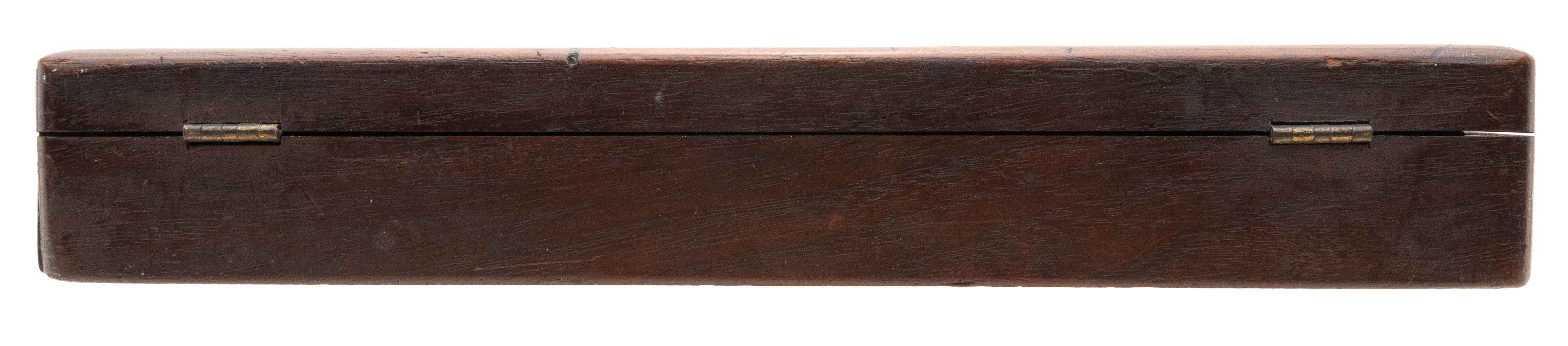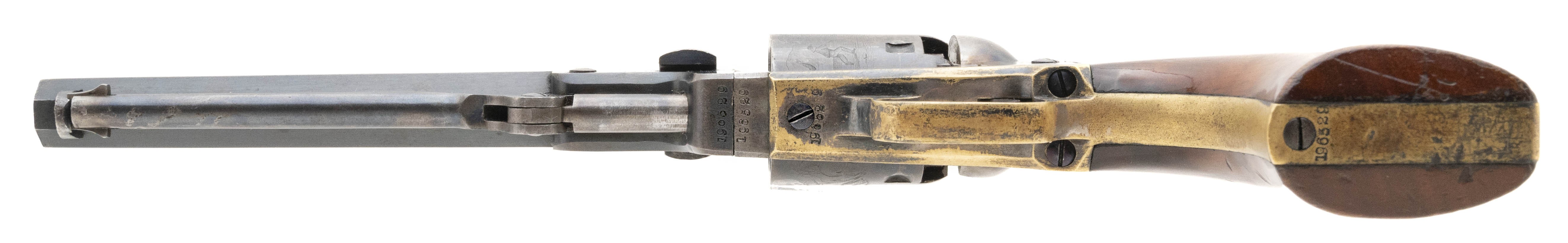 Cased Colt 1849 Pocket made in 1861. Very fine gun with 80%-90% of the original blue on the barrel with some flaking and high edge wear. Frame is excellent with bright case colors. Grips are excellent. Case is very fine. All accessories are nice.