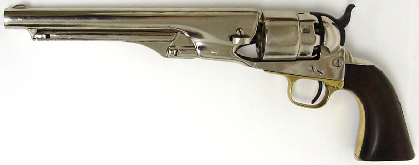 Colt 1860 Army .44 caliber revolver. Nickel refinish priced very reasonably.