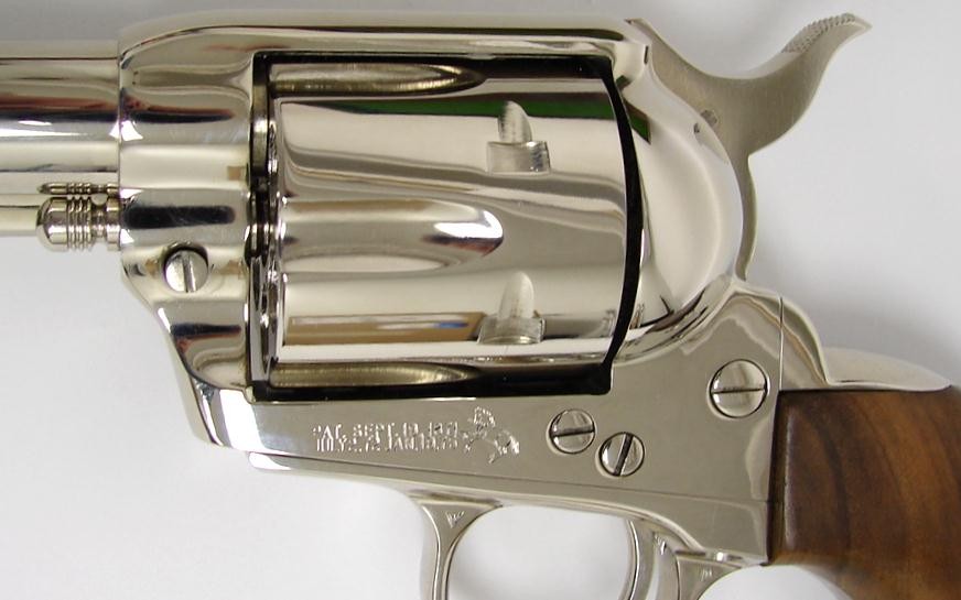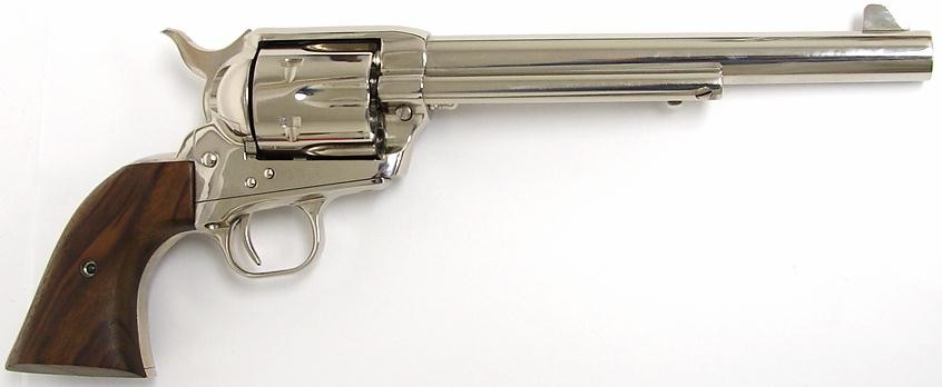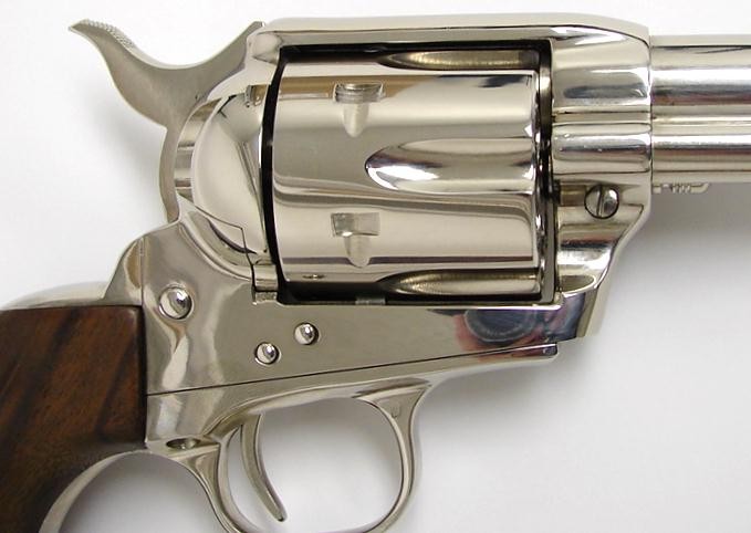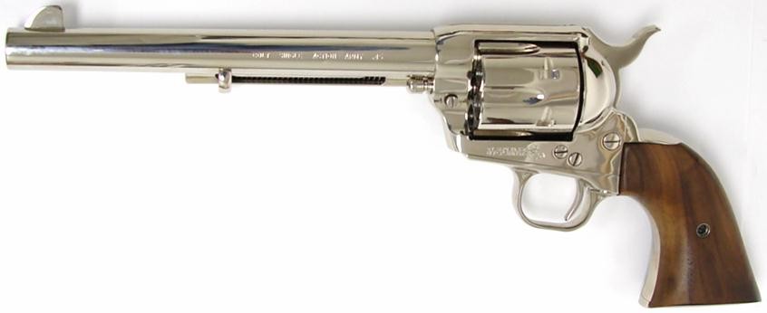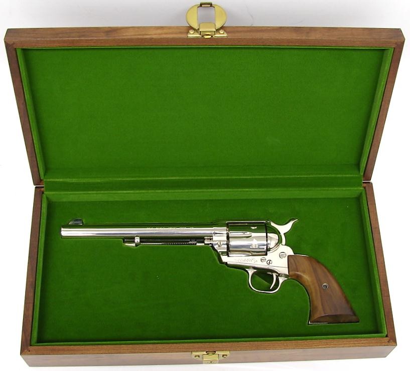 Colt Single Action .45 LC caliber revolver. Early 3rd generation factory nickel gun with presentation case.