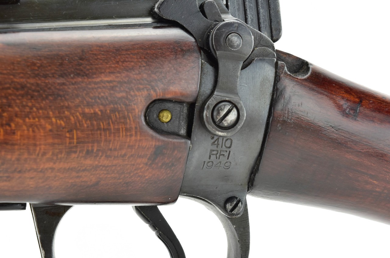 Lithgow No.1 Mark III .410 Gauge rifle. WWII British military rifle. Reissued to India, and arsenal converted to shoot brass .410 Gauge shells. Very good overall condition. Tang by trigger is marked “RFI .410 1949”.