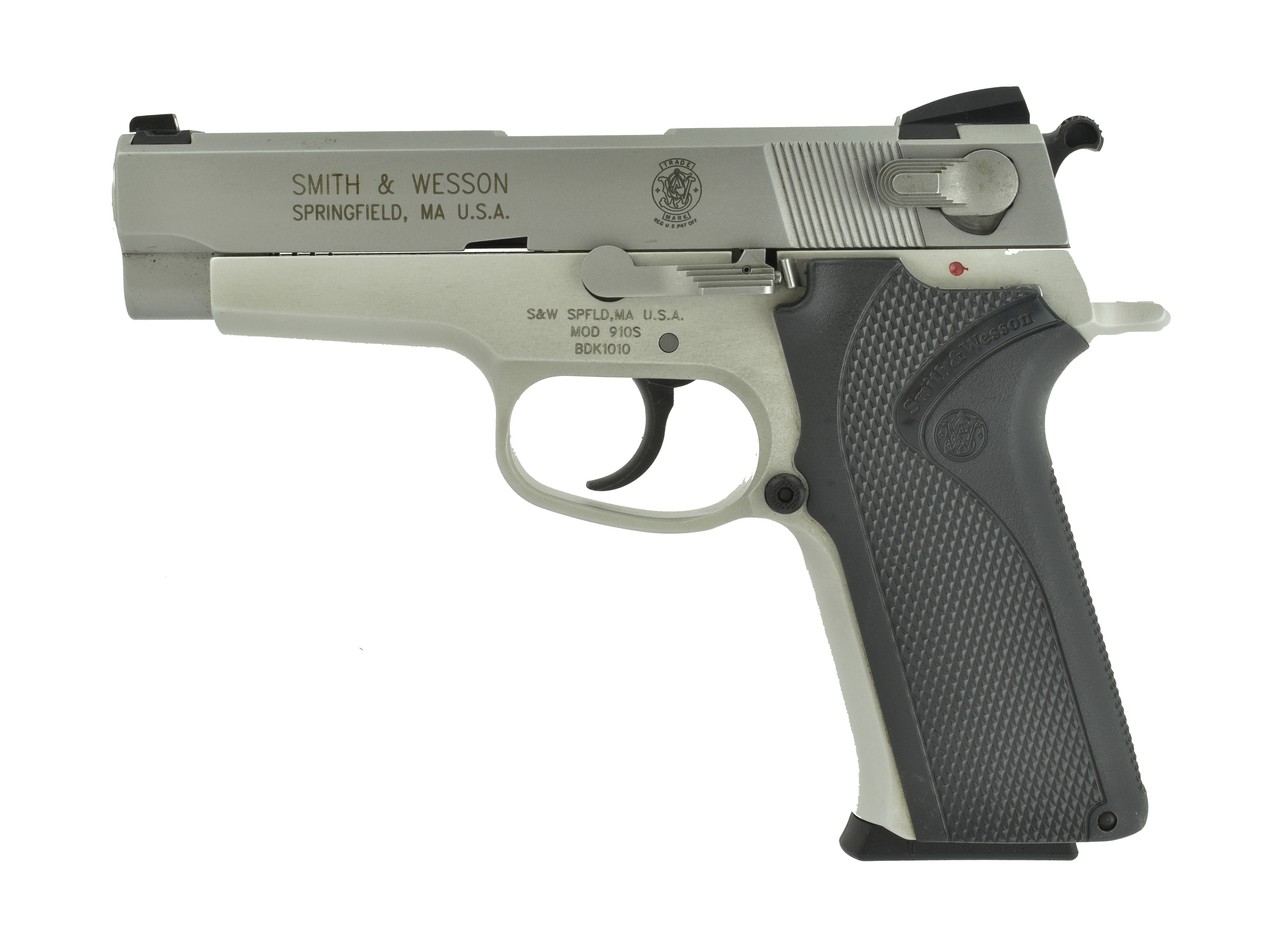 Smith & Wesson 910S 9mm caliber pistol. Stainless and alloy full size model with 15-round magazine. Excellent condition with box.