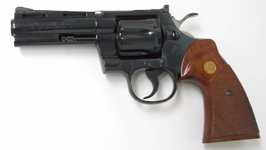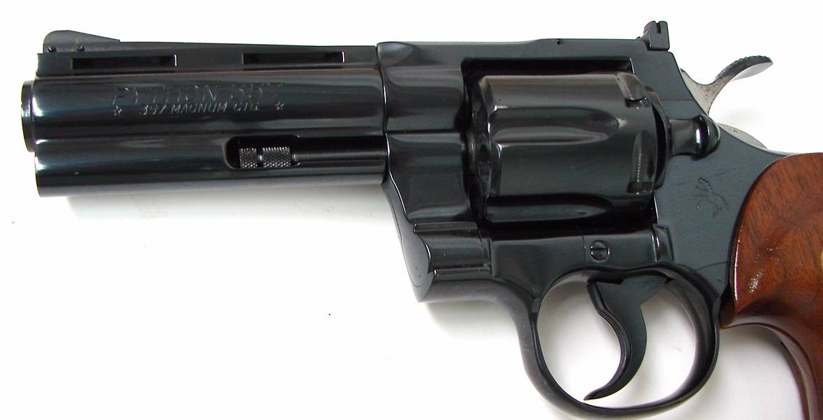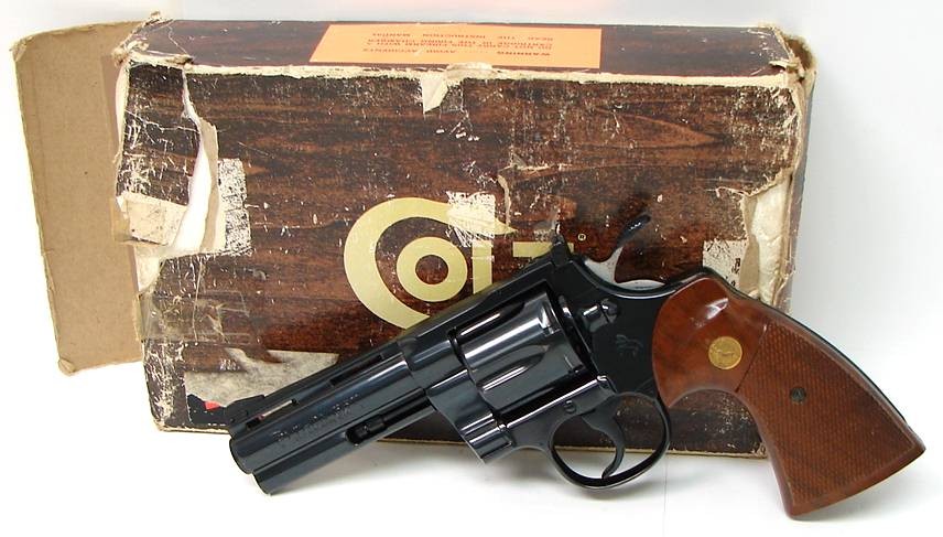 Colt Python .357 magnum caliber revolver. 4 blue model in excellent condition with tattered box.