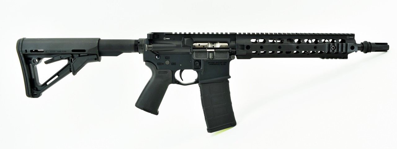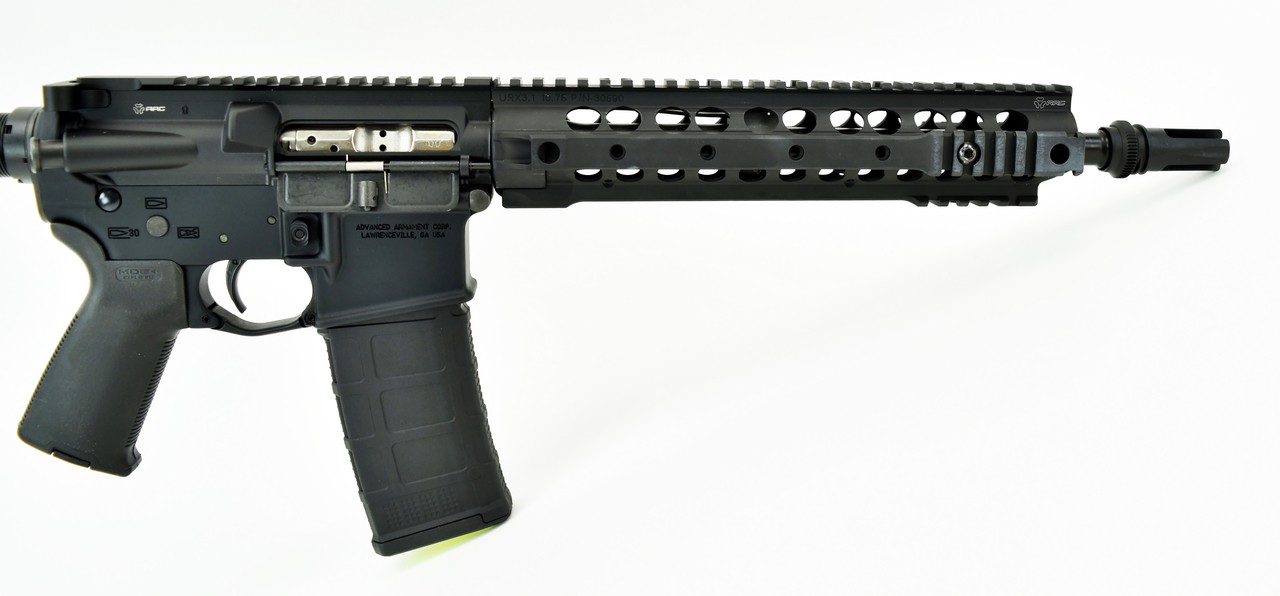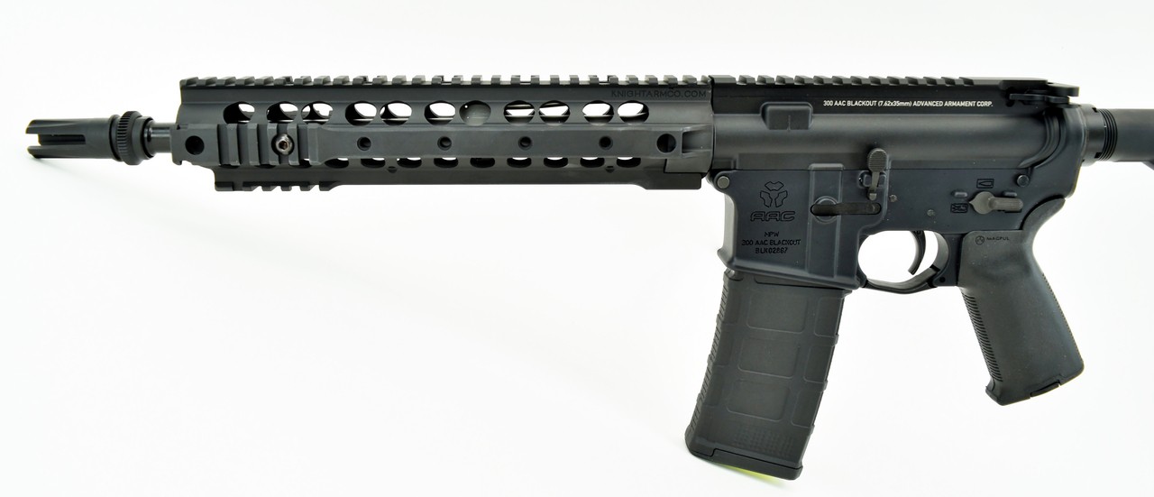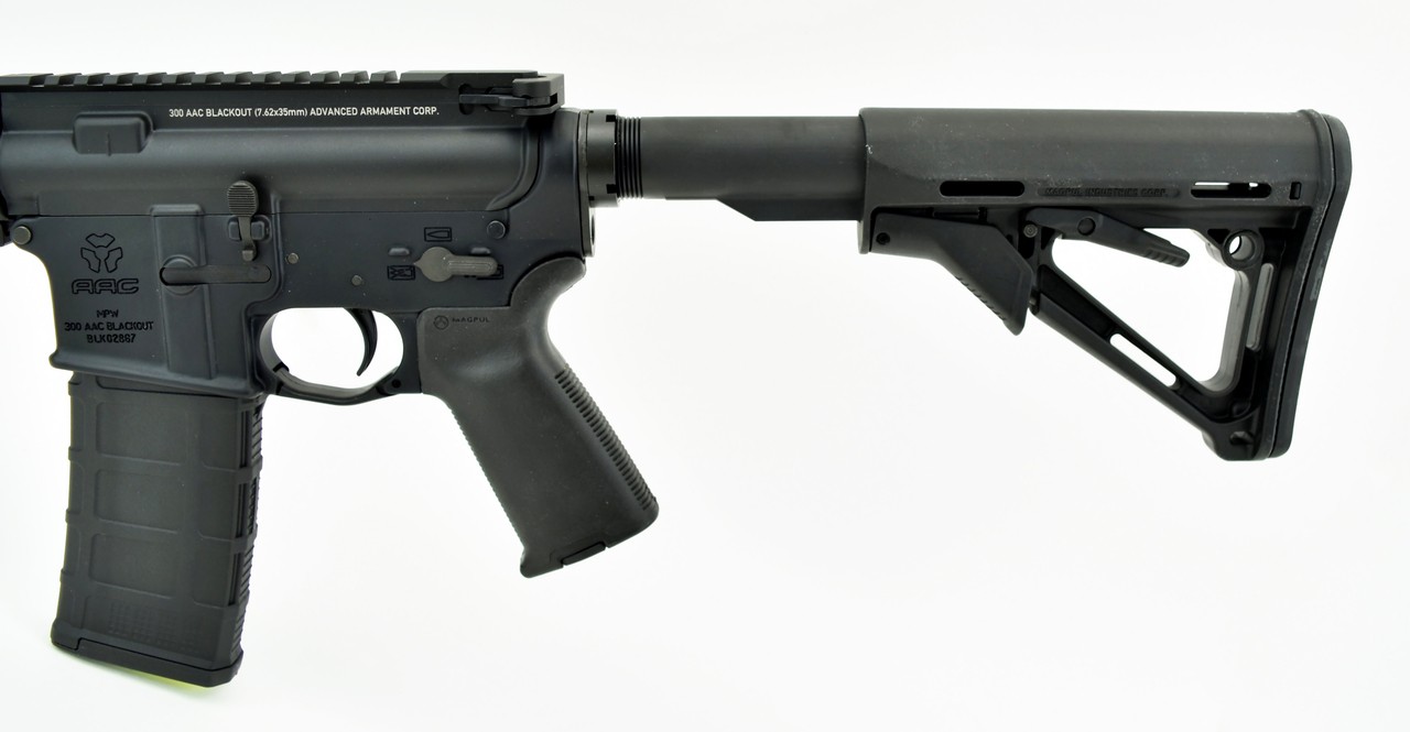 Advanced Armament MPW .300 AAC Blackout caliber rifle. AAC MPW 12.5” 300 blackout with magpul grip, stock, knights rail and 5IT flash hider. New