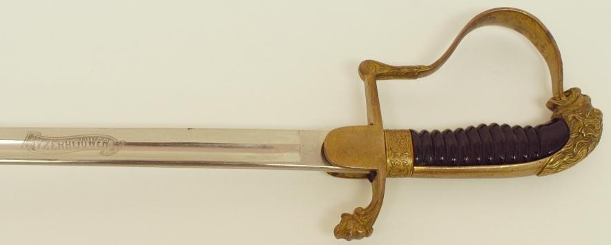 German Lion Head hilt Officer sabre. Probably foreign contract. Etched: Yzerhouwer on blade. (sw551)