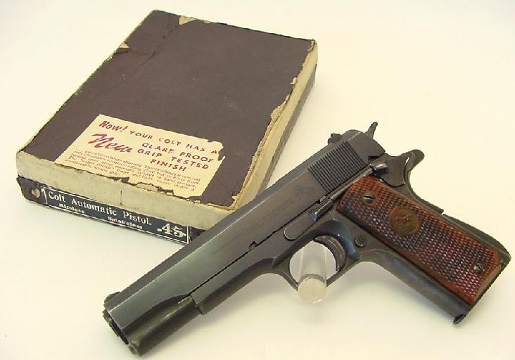 Colt Government model 45 caliber pistol with box and instruction sheet. Mfg 1949. (pr1540)