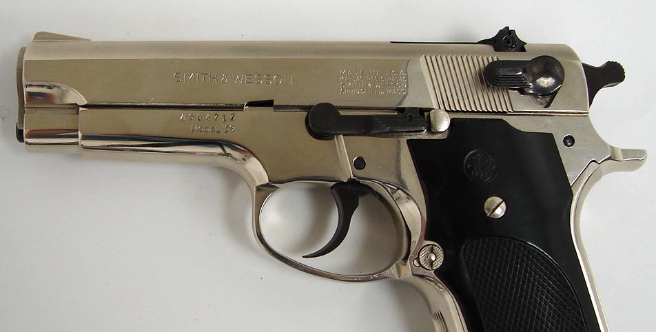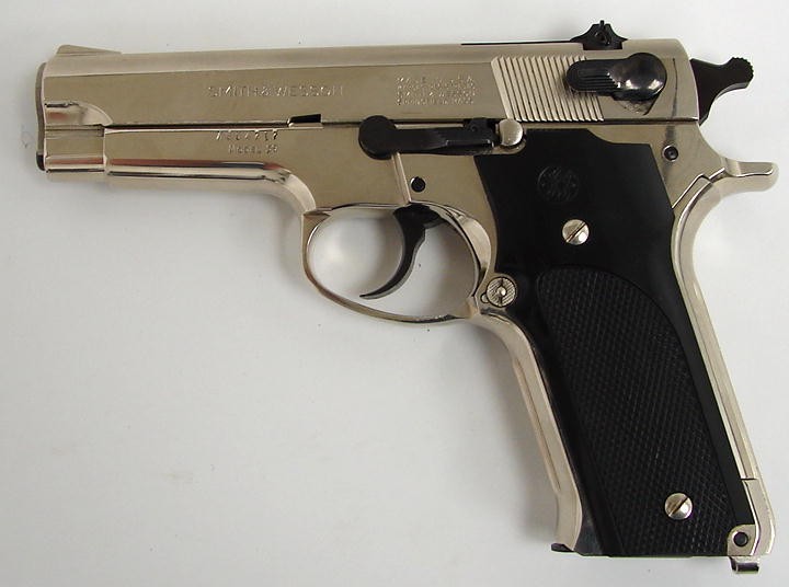 Smith & Wesson 59 9mm caliber pistol 1970s vintage model with factory nickel finish. Excellent condition. (pr9037)