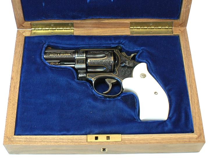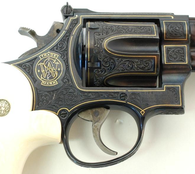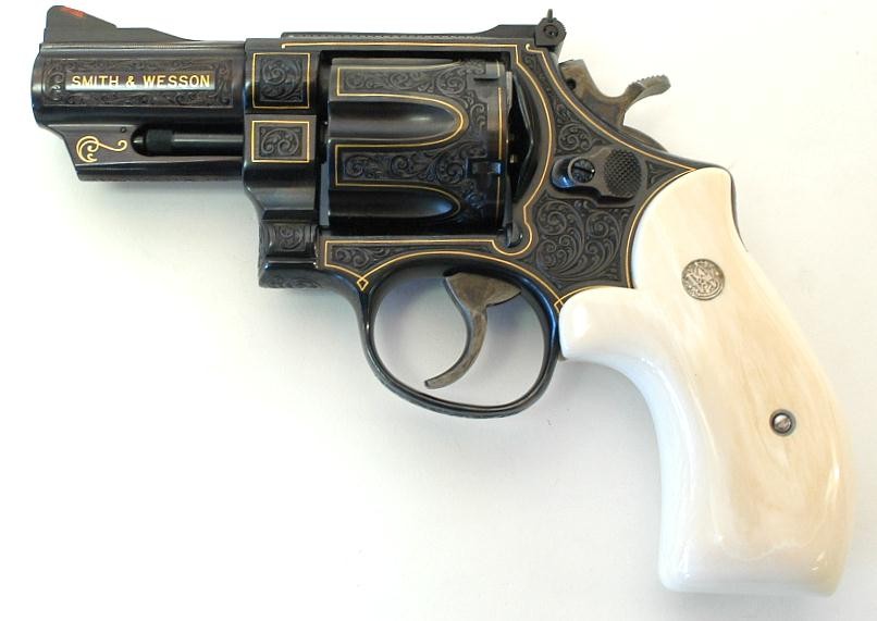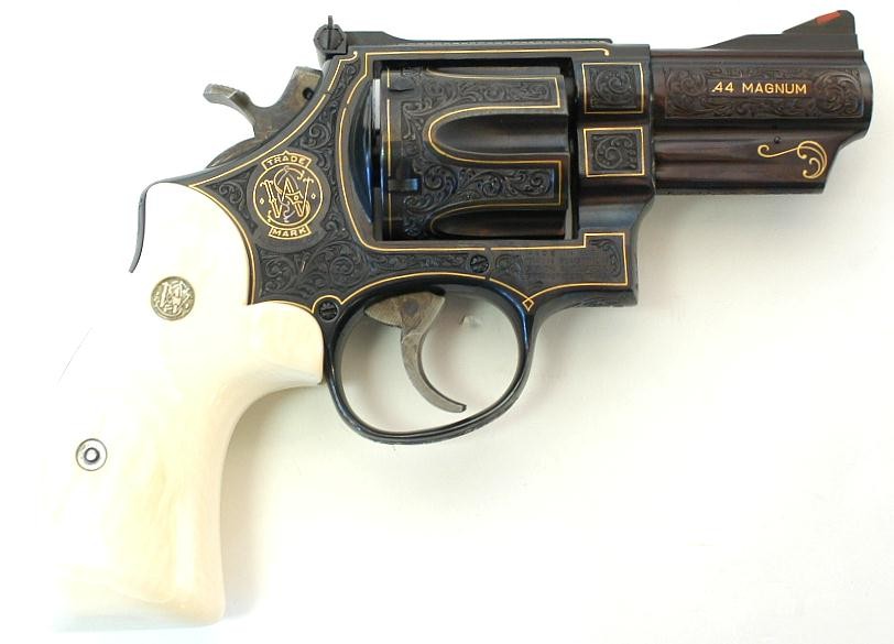 Smith & Wesson Model 29 44 Magnum caliber revolver custom engraved with gold inlay and ivory grips. (pr2896)
