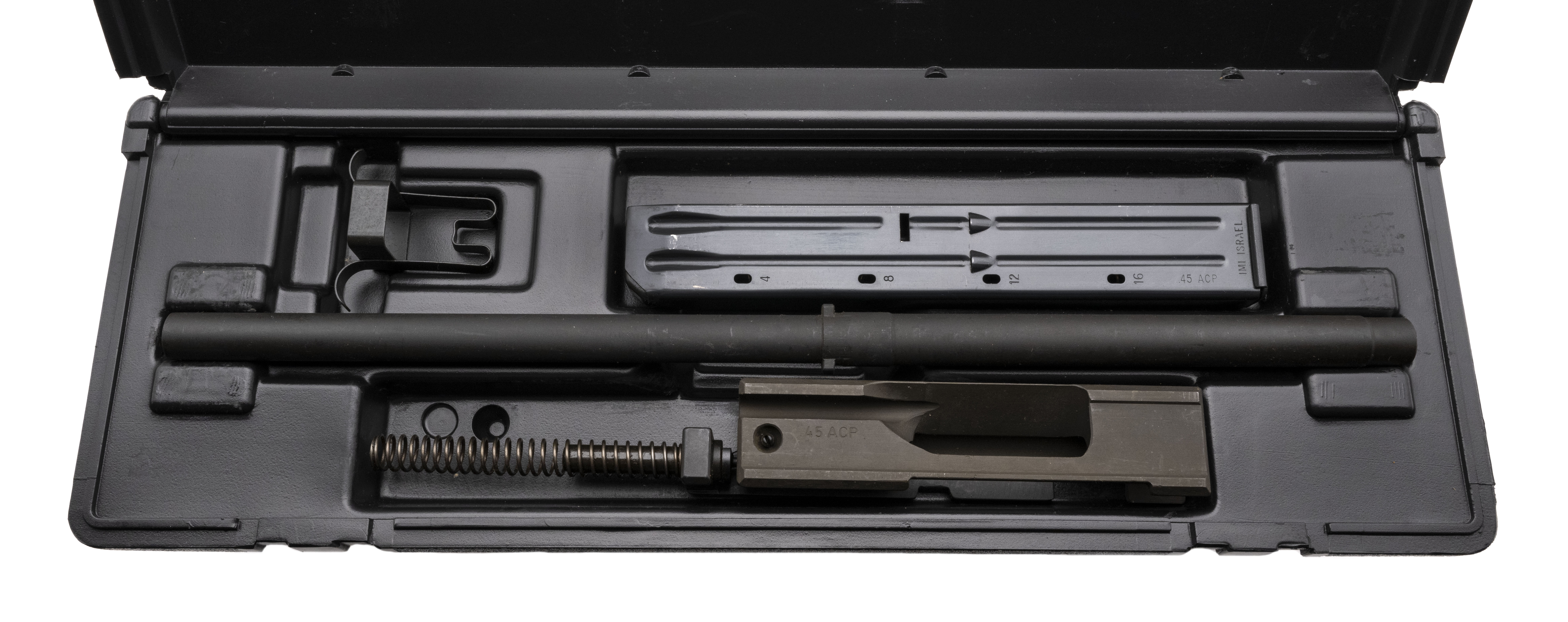 Uzi .45 ACP complete conversion kit with a 16" barrel. Overall condition is very good. Comes with case. (Consignment)