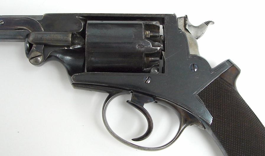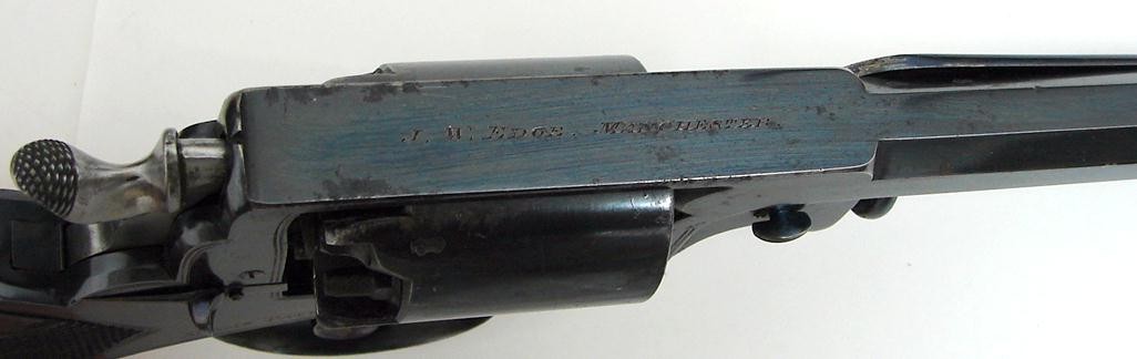 Adams .45 caliber percussion revolver cased with accessories. Large frame revolver with 5 3/4" barrel. Marked on top flat "J.W. Edge Manchester". All in near excellent condition.