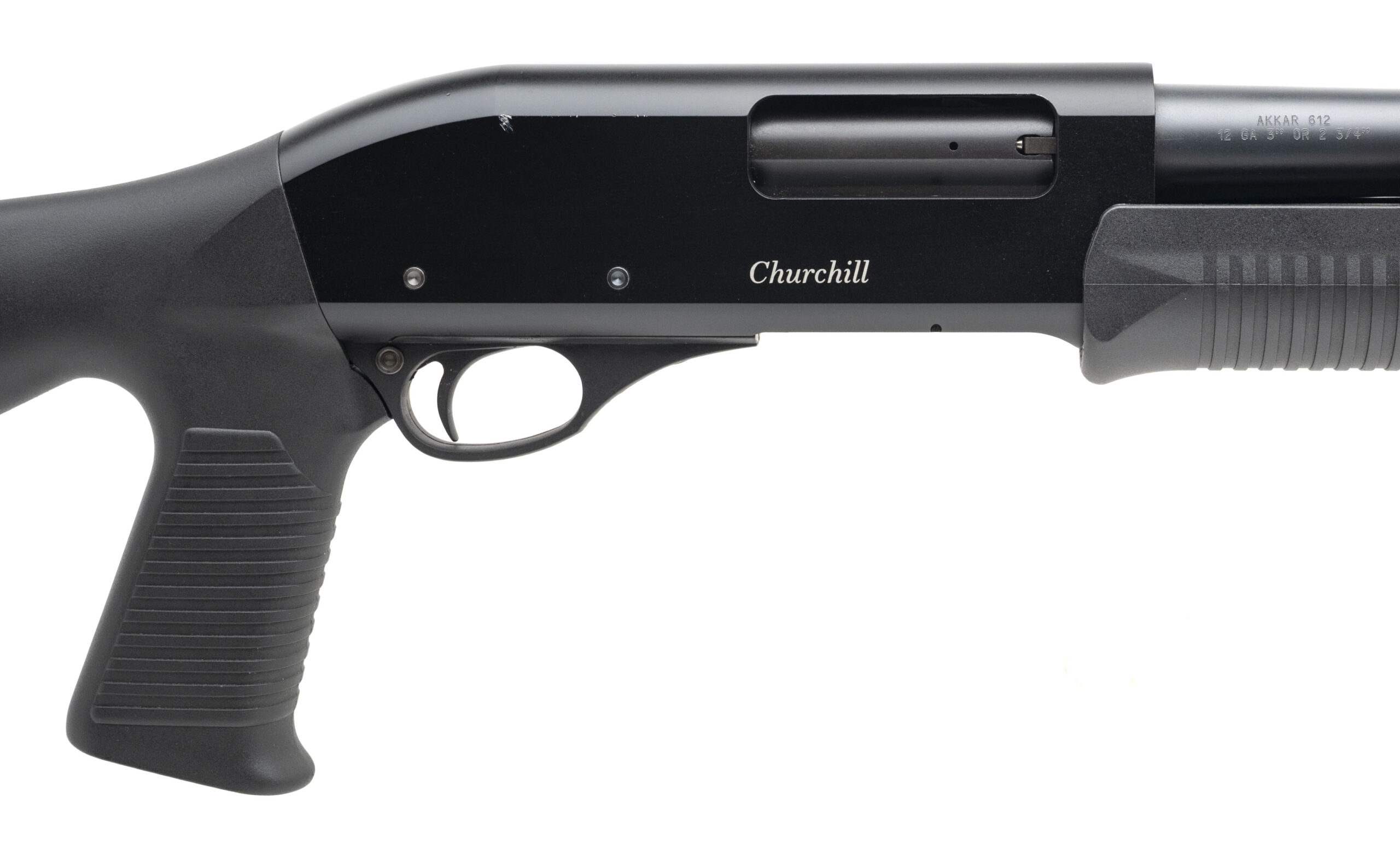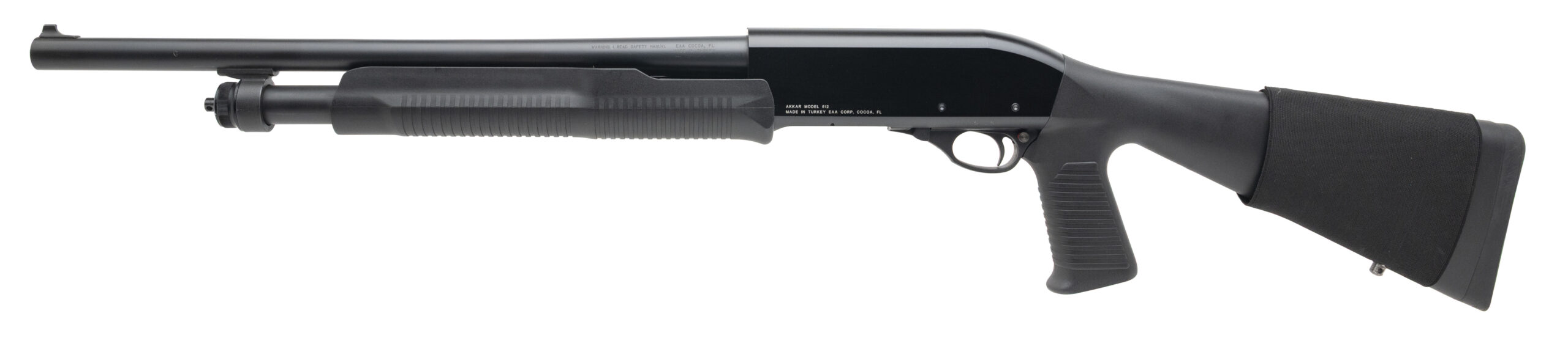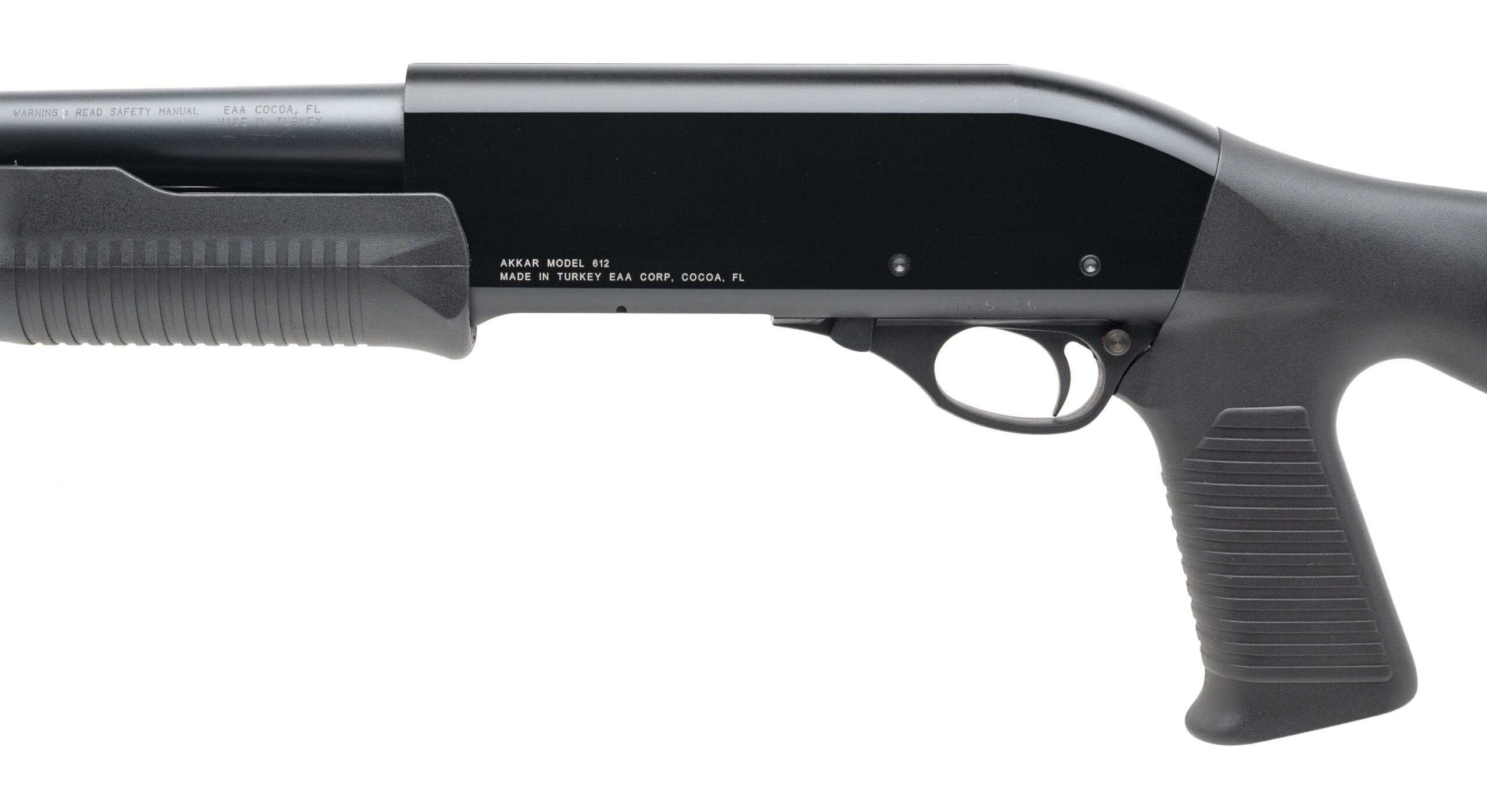 SN: 21115725. Modern production, 12 gauge with a 18.5" barrel w/cylinder bore chambered for 2 3/4" & 3" shells. Bore is very good. Turkish made defense shotgun with matte black finish, and black synthetic forend & stock with a 14.25" LOP. Finish shows light marks. Overall condition is very good. Includes shell holder.