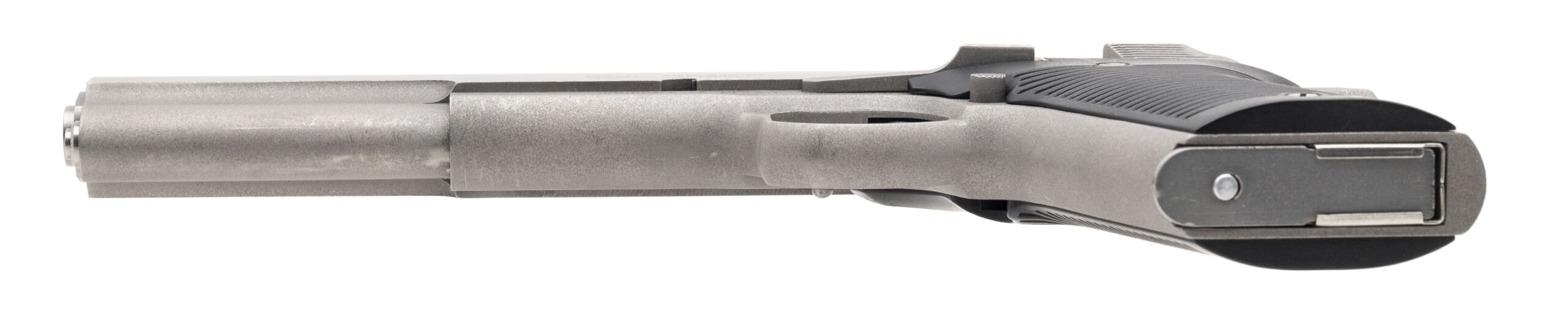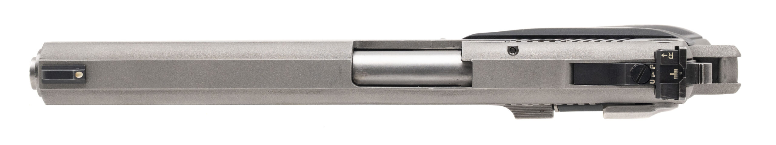 SN: A05950 made circa 1990's. Stainless steel semi-auto pistol with a 6.5" barrel chambered in 30 carbine with 3 dot sights with an adjustable rear and original grips. Overall in very good condition. Comes with soft case and 2 extra magazines. Dallas Location