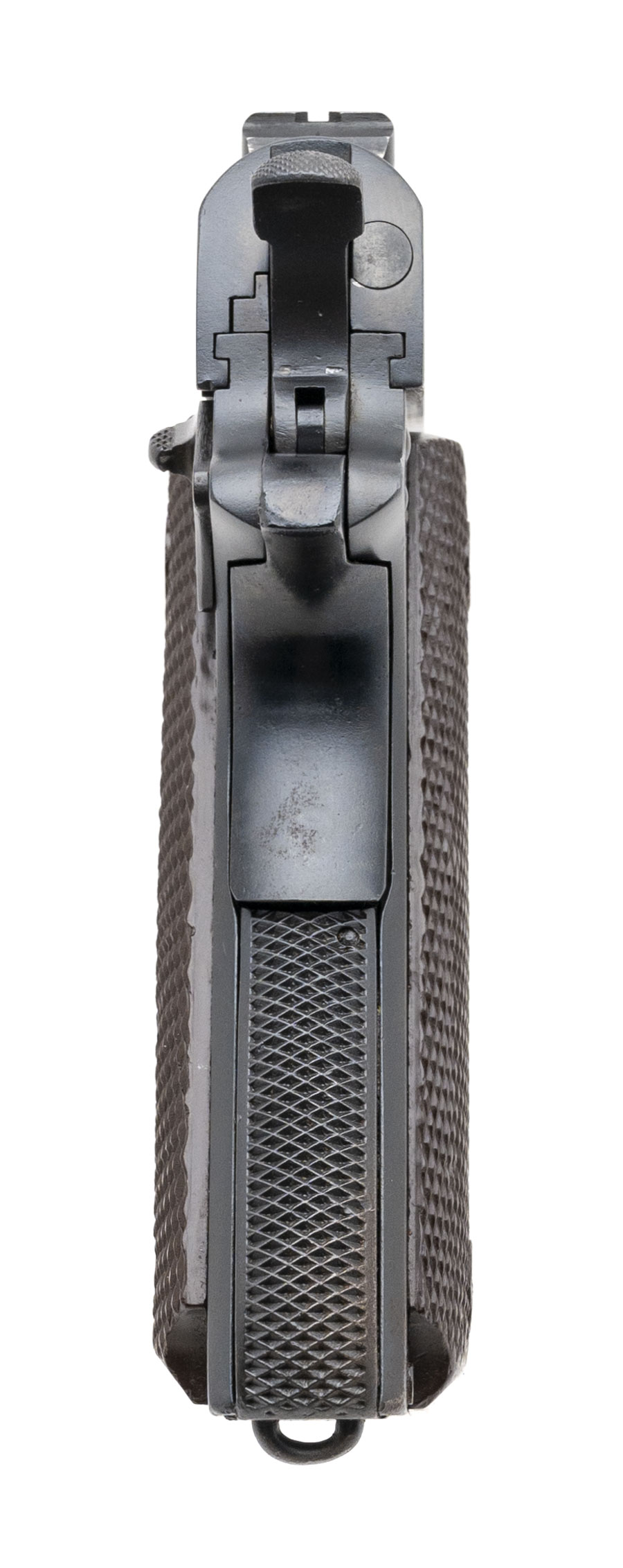 Serial No. 97650, made in 1958, 11.25mm (.45ACP) 5” round barrel. Bore is good with frosting noted in the grooves, rifling remain strong. Serial numbers are matching, re-arsenal finish rates about 97%. Grips have light handling wear, checkering remains sharp. Action is smooth and functions correctly. Consignment