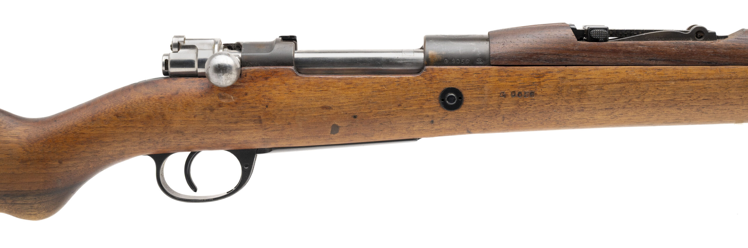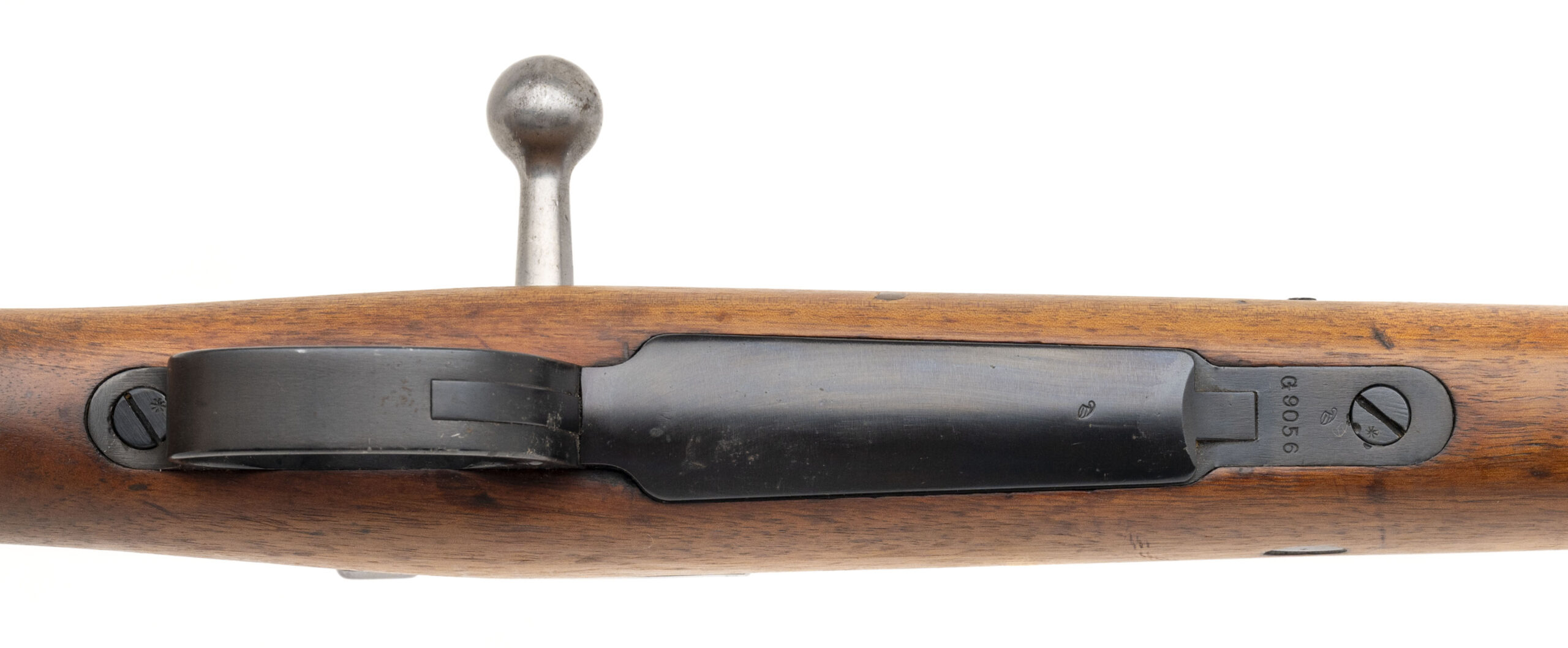 Serial No. G9056, manufactured in 1910, 7.65x53mm, 29½” round barrel. Serial numbers are matching throughout. Stock has been refurbished at some point, with a small repair noted at the toe. Light surface oxidation is visible on the receiver. Action is smooth and functions correctly. A solid and well-maintained example of the Argentine Model 1909 Mauser, reflecting the fine quality and precision of early 20th-century DWM craftsmanship.