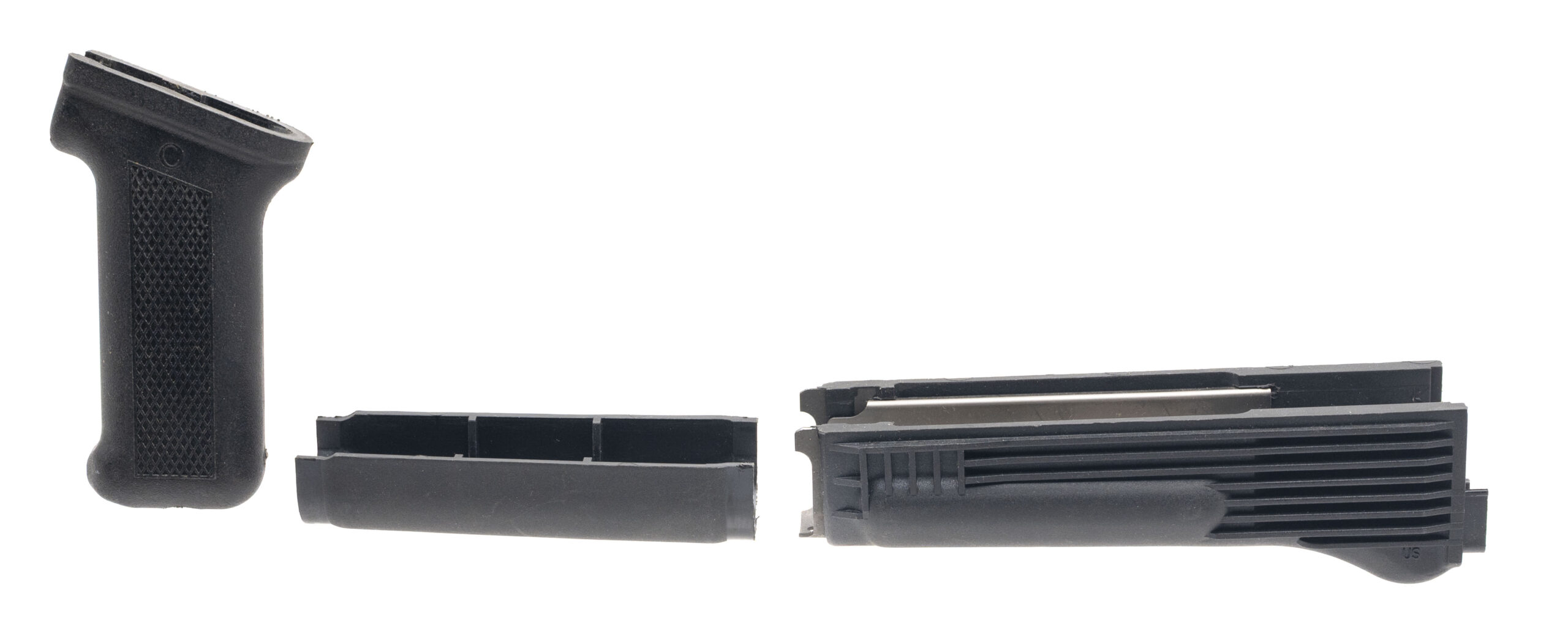 Serial number AC542863. Made in 2014 with a 16.3-inch Bulgarian-made, cold hammer forged, chrome-lined barrel that has a bright bore with strong visible rifling. Currently in AKS-74 configuration with a side-folding triangle stock, Baltic Birch plywood laminate upper & lower handguards, as well as a salmon-colored military surplus plastic pistol grip. The original U.S. made 922(r) compliant black synthetic furniture components are included in the original factory shipping box. Overall condition is excellent with the original black enamel paint over phosphate finish that was applied to the metallic parts at the factory. Comes with a U.S.-made muzzle brake, an optic rail on the left side of the receiver, a Soviet military surplus webbed sling, the green Bulgarian webbed sling that originally shipped with the gun, cleaning kit, oil bottle & three Bulgarian military surplus "Circle 10" 30-round plastic magazines.