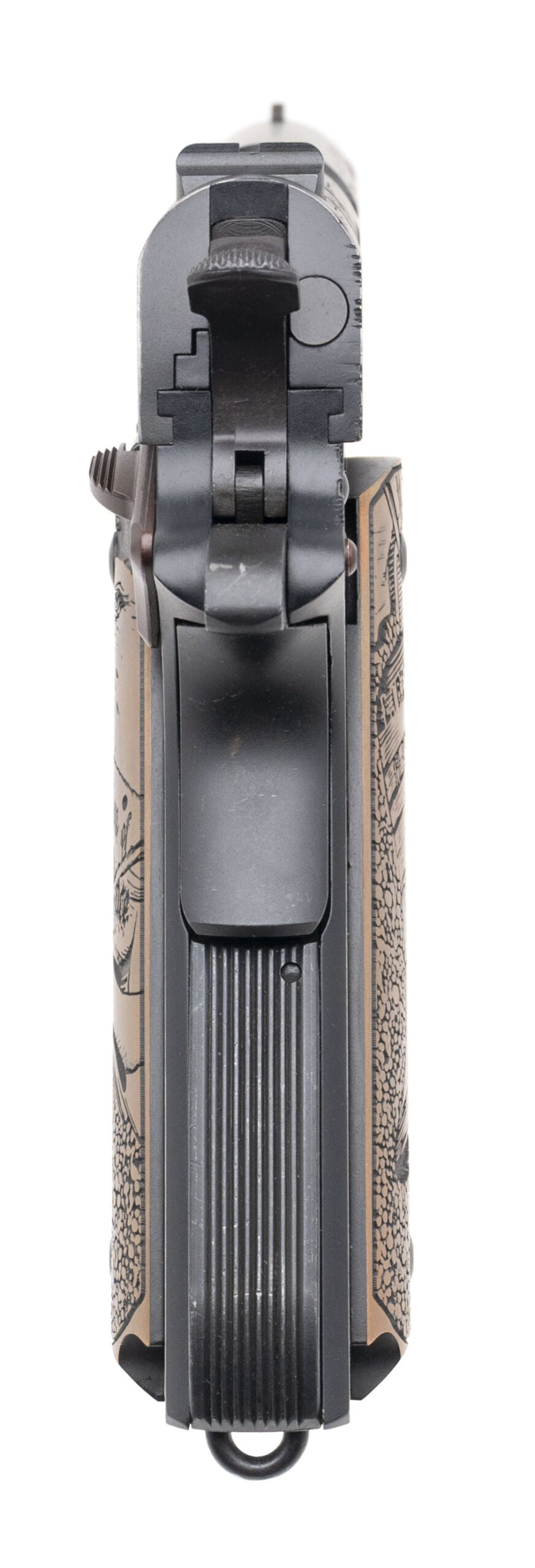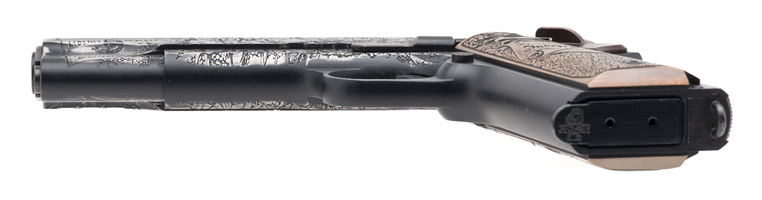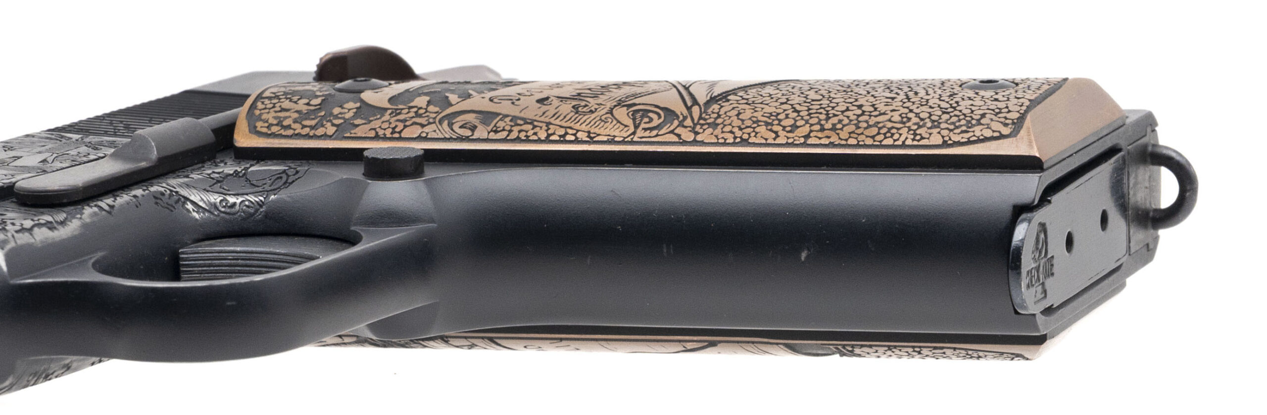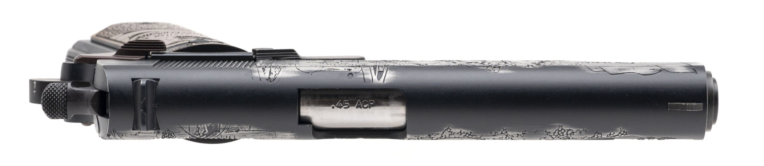 SN: AOF00503. modern production, .45 Auto with an 5" barrel. Bore is bright with strong rifling. American Revolution commemorative 1911 pistol that was customized from an Auto-Ordnance Government Issued 1911. This gun features a custom distressed cerakote finish w/engravings throughout the slide and copper colored aluminum grips w/engravings. Excellent condition overall. A very historical 1911 that was once a service gun and now a commemorative to U.S. history.