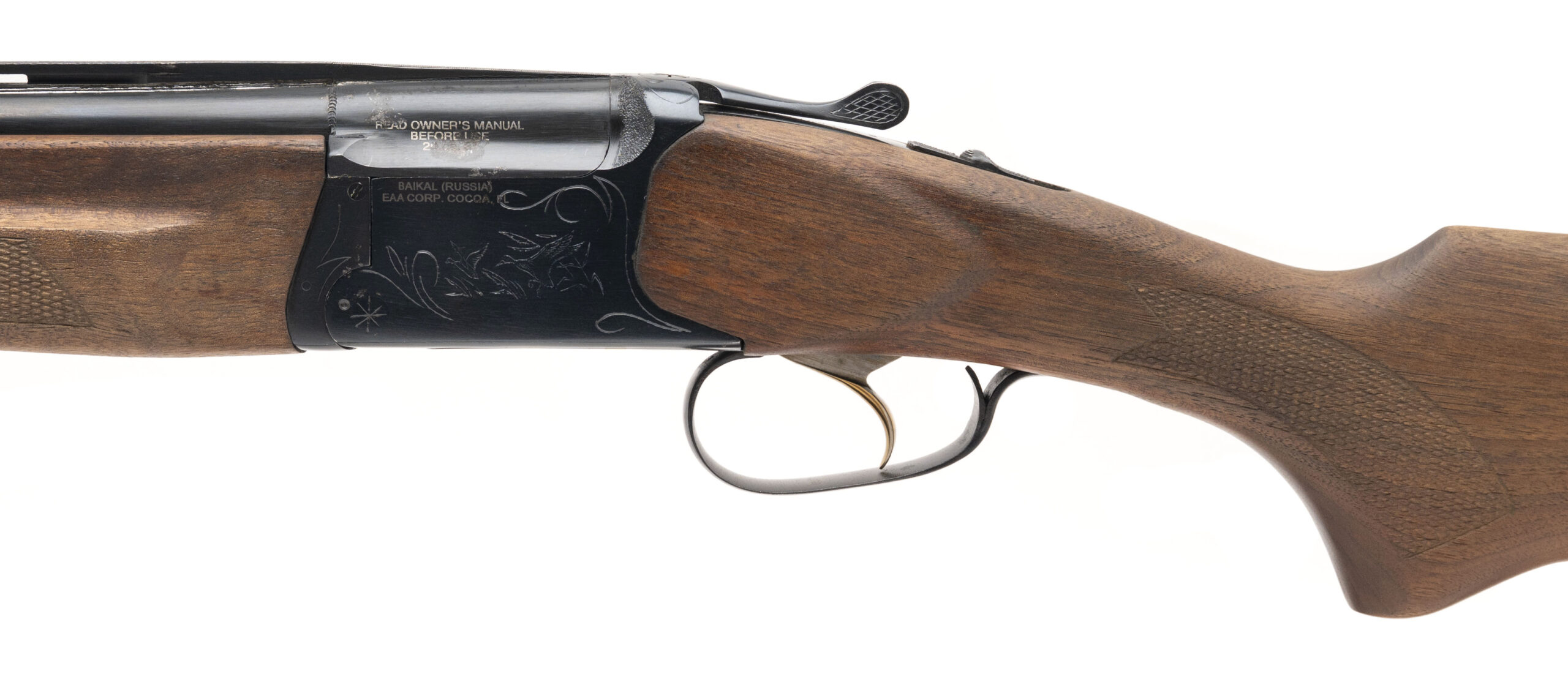 SN: IZH-27EM-1C-M. Circa 1990s vintage, 20 gauge with 28" vent rib barrels. Bores are very good. Over/under field shotgun with 14" LOP. Blued finish and checkered wood stock. Finish and stock shows wear. Includes sling. Overall condition is very good.