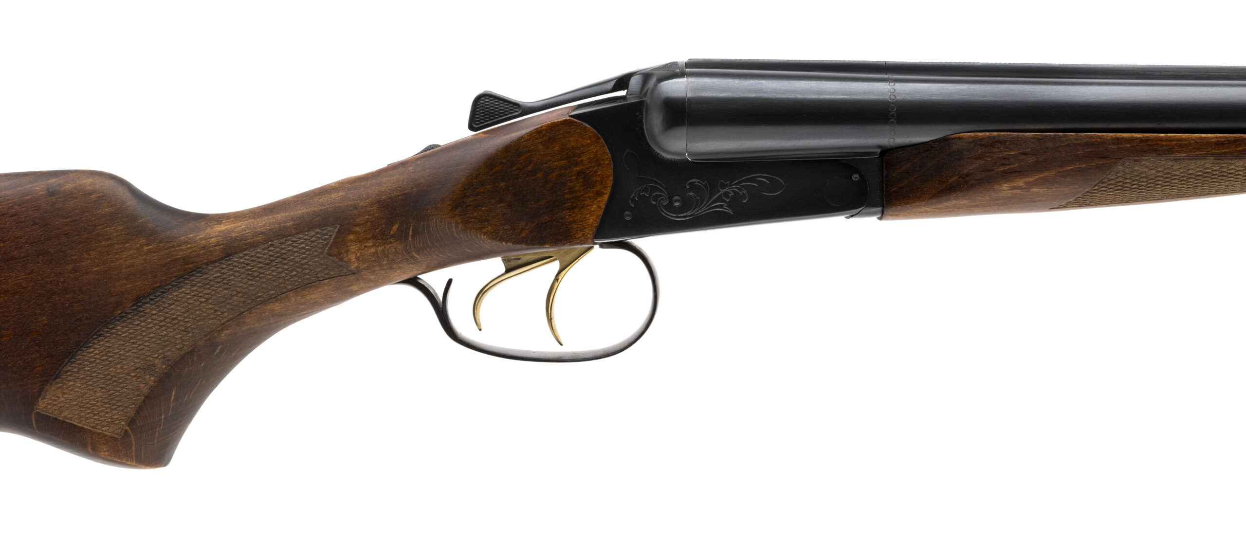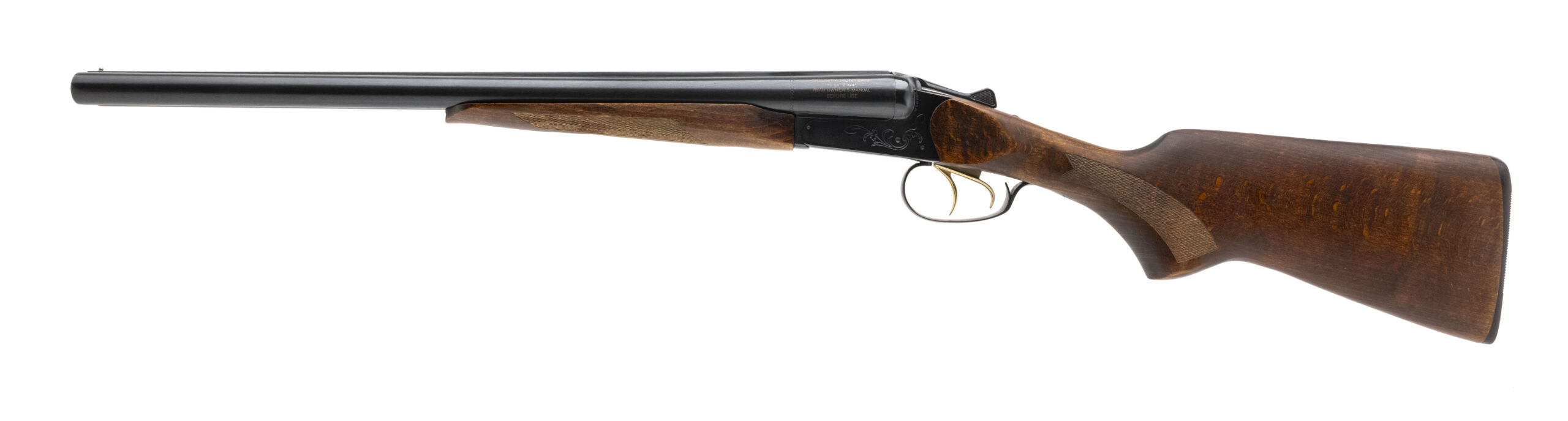 SN: 0120199B. Modern production 12 Gauge with 20" barrels. Bores are bright. Side/Side shotgun with engravings. Finish is in very good condition with minor wear along the barrels. Wood stock and forend are in excellent condition. Overall condition is very good.