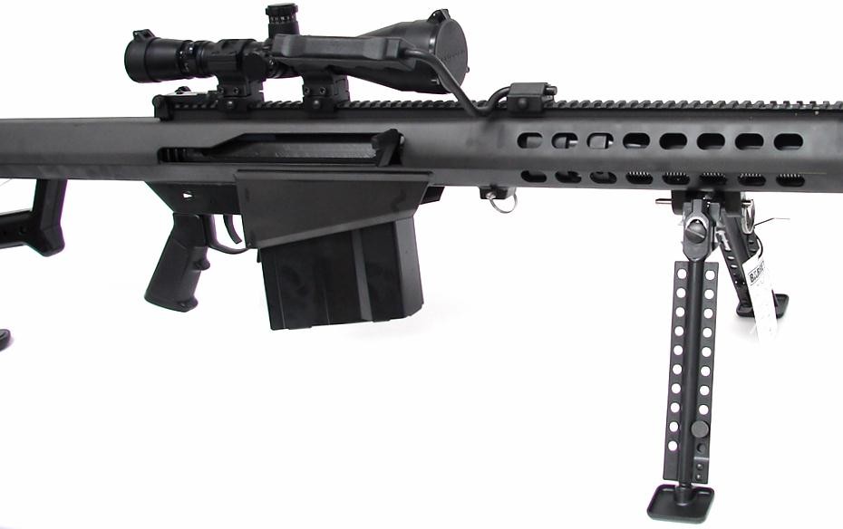 Barrett M82 A1 .50 BMG caliber rifle with 28 fluted heavy barrel and complete package consisting of monopod, Leupold 14 power s (r4719)
