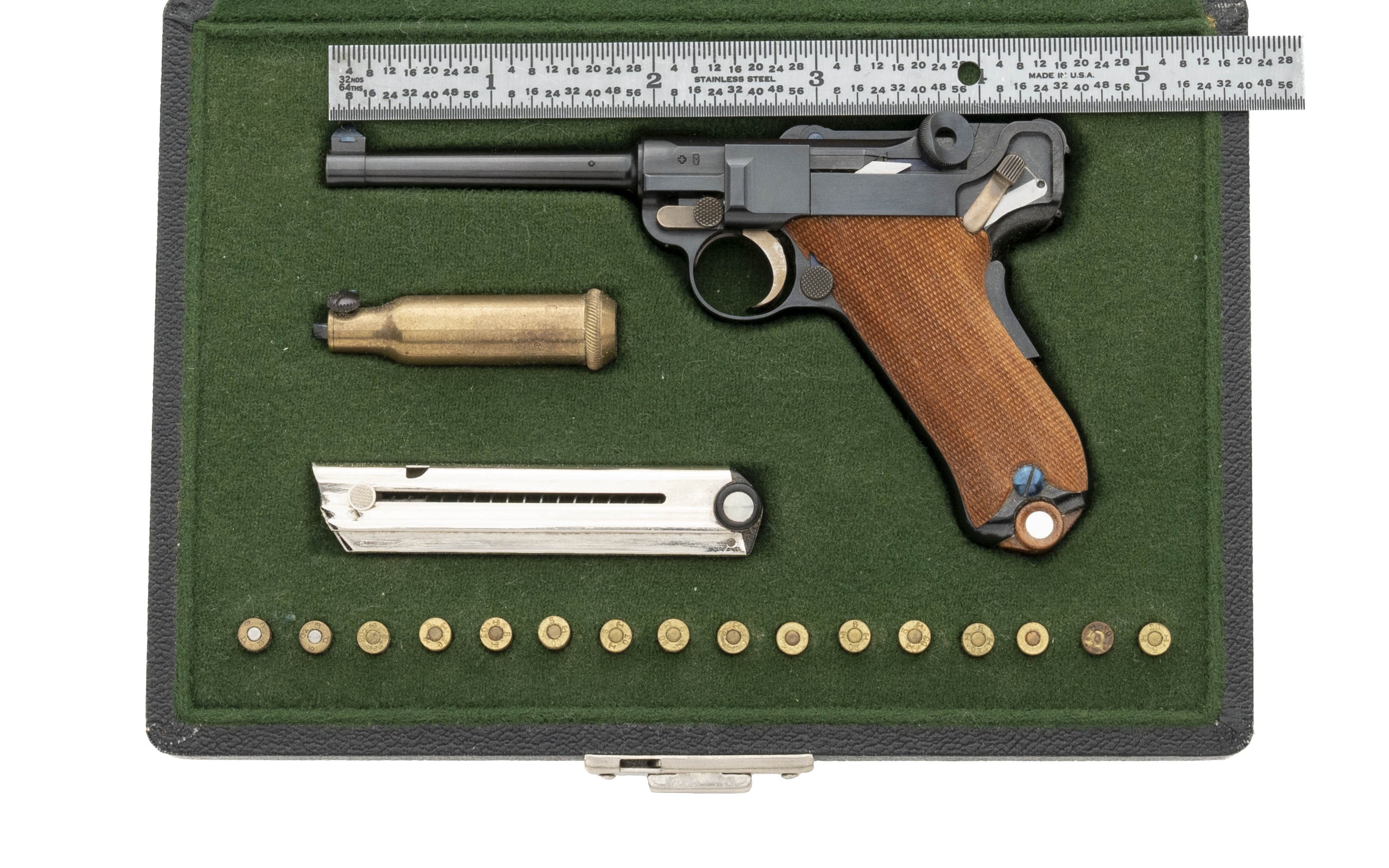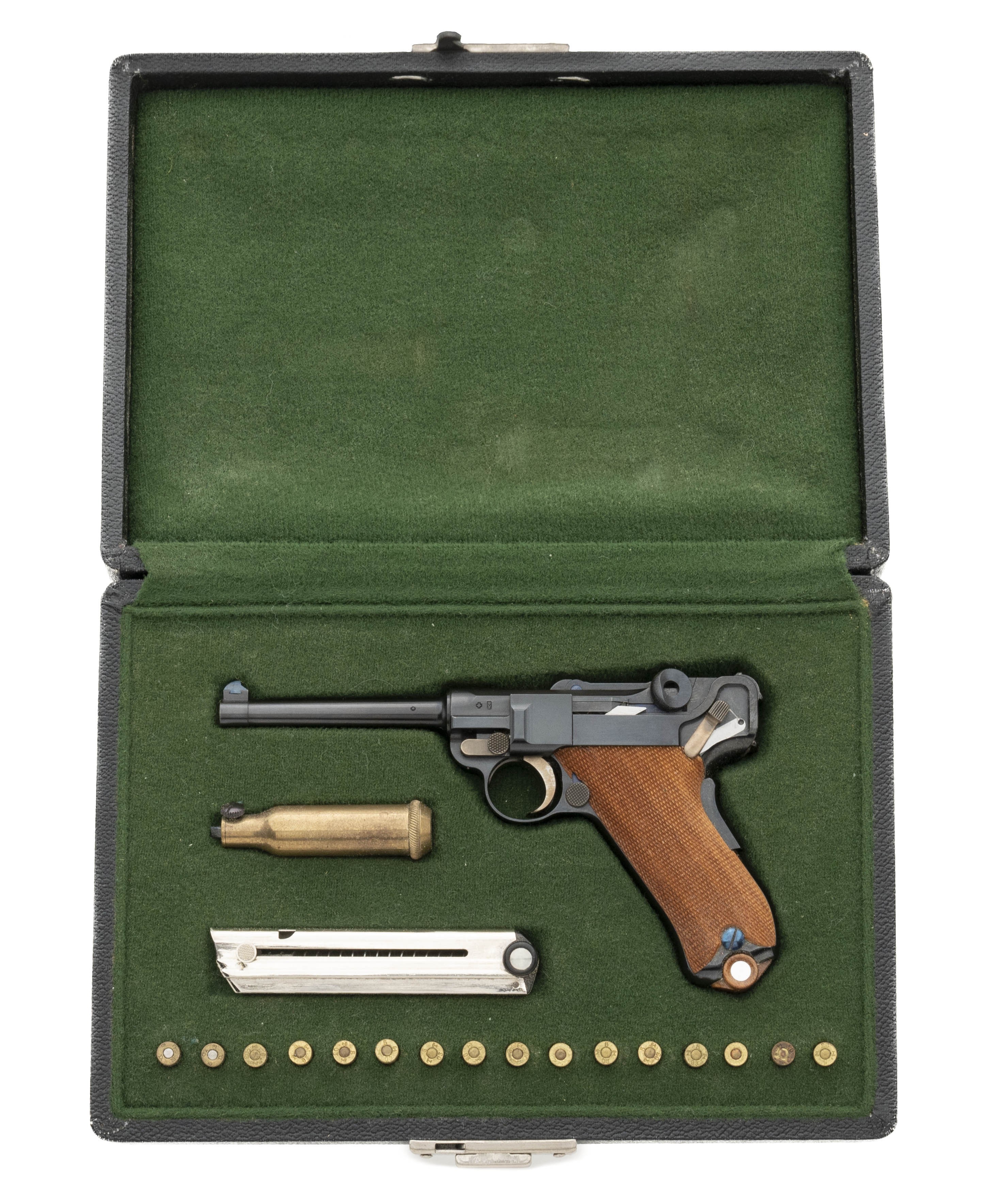 Absolutely Beautiful Miniature of a 1900 Swiss Luger by Leon Crotett. Gun is in mint condition. This gun is fully functional and comes with 16 rounds of live ammunition made by Mr. Crotett. This miniature is made by world renowned gunsmith Leon Crottet. Mr. Crottet is considered one of the finest if not the very finest makers of miniature firearms. He is also known for his work on Sig P210 models. He was instrumental in the making of the Sig 210-8 which is the only model that has the American magazine release