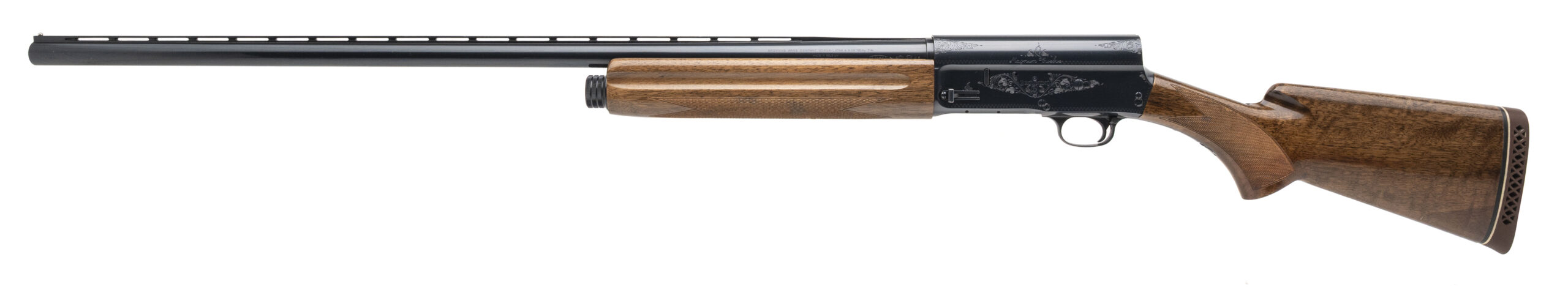 SN: 74V29168 made in Belgium in 1974. 12 gauge semi-auto field shotgun with a 32" vent rib barrel, 3" chamber and fixed Full choke. Blued metal finish with an engraved receiver and high gloss checkered walnut furniture with a 14.25" LOP to the original Browning recoil pad. Overall in near excellent condition with only some minor handling marks on the furniture and an excellent bore.