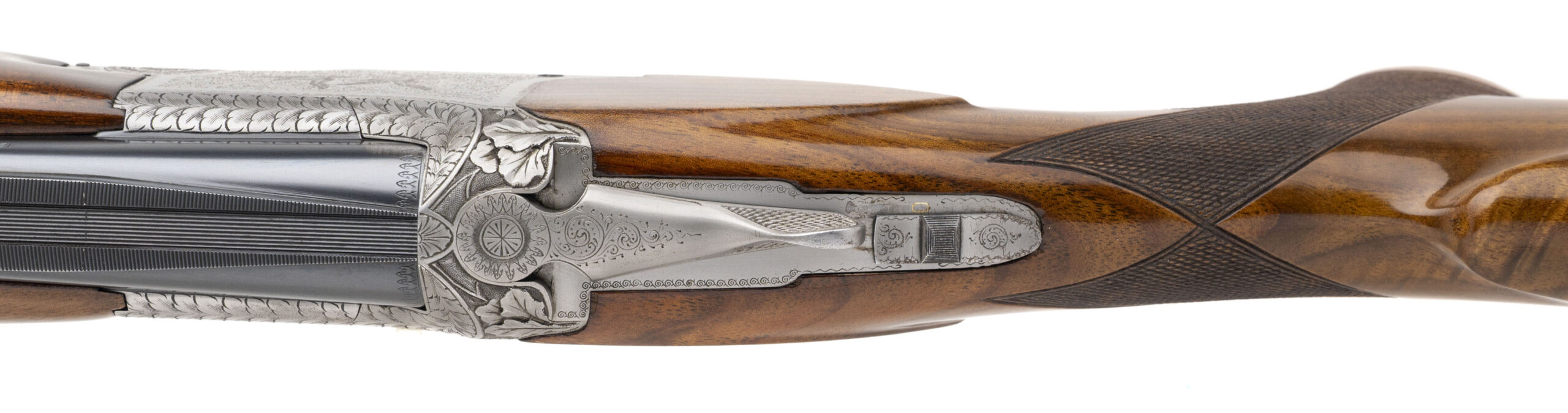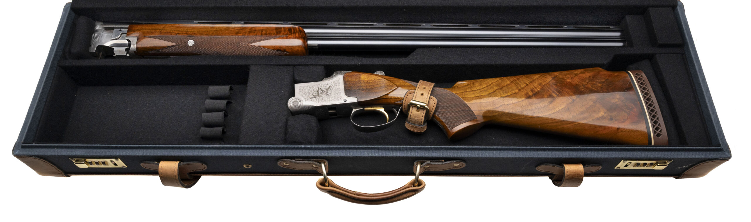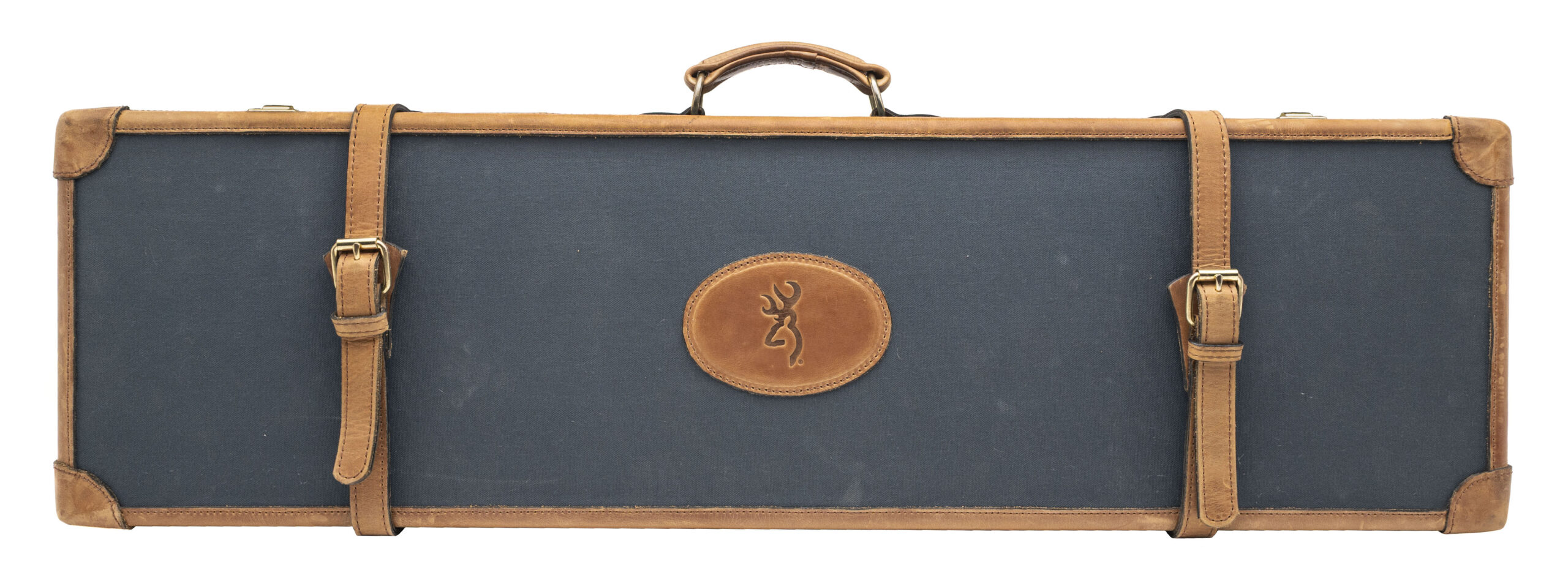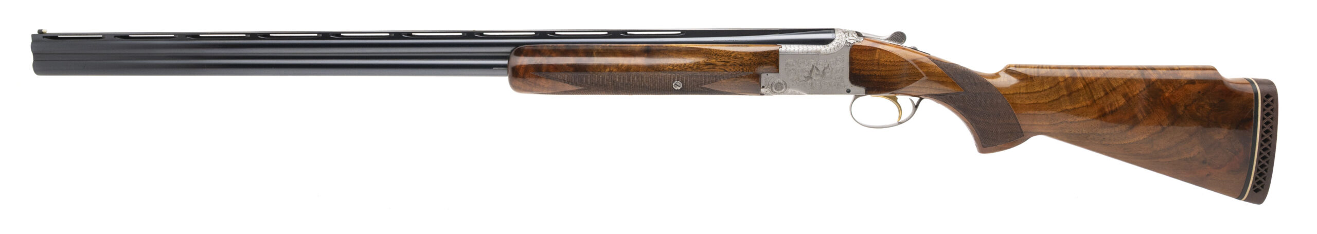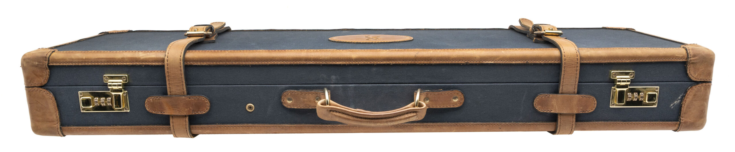 SN: 55386S6 made in 1966 in Belgium. 12 gauge over under with 32” vent rib barrels with wide broadway rib, white front and middle beads, 2 ¾” chambers and fixed chokes measuring .020/.039. Engraved coin finish box lock with a gold plated selective single trigger, auto ejectors and a manual safety. Nicely figured checkered walnut furniture with a monte-carlo stock and a 14 5/8” LOP to the Pachmayr white line recoil pad. Some light handling marks but overall in very good condition with excellent bores. Comes with modern Browning canvas luggage case.