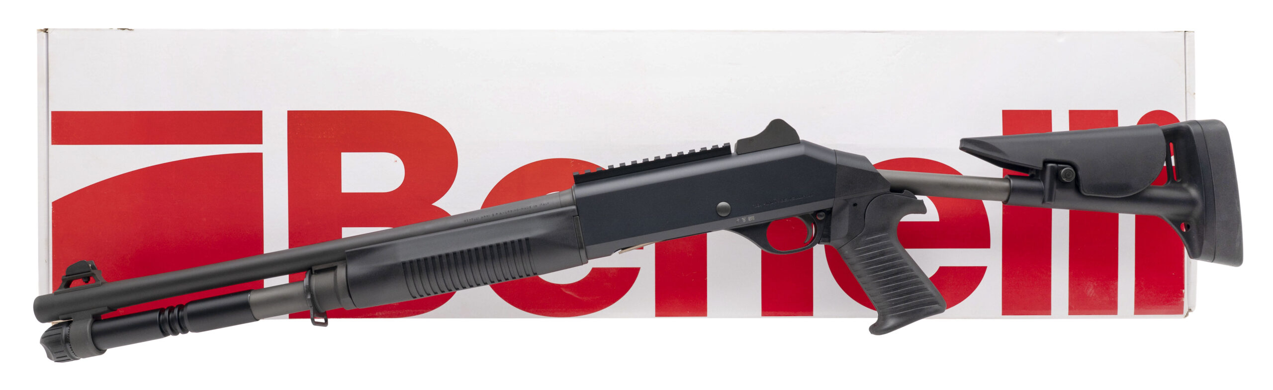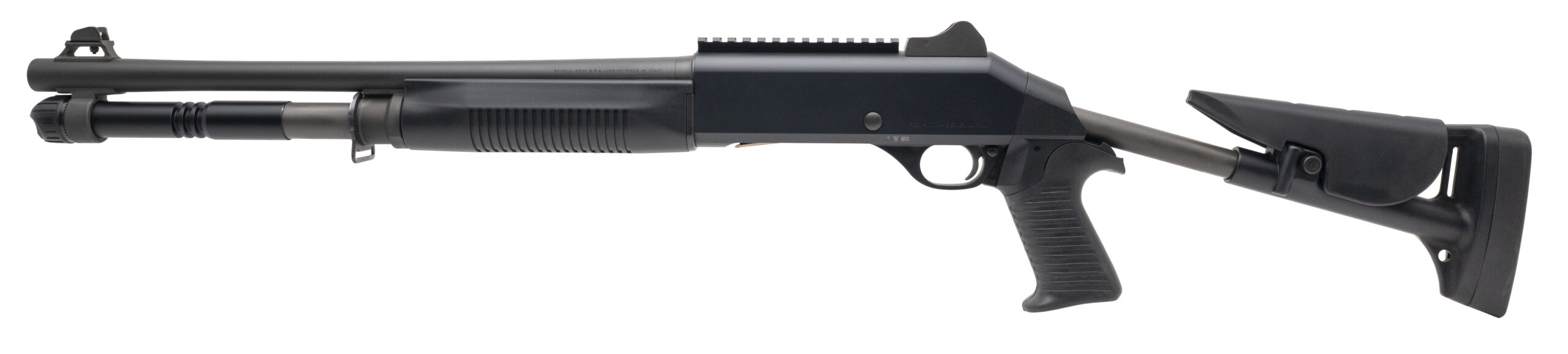 SN: Y144118K. Modern production, 12 gauge with a 18.5" modified choke barrel chambered for 2 3/4" & 3" shells. Bore is excellent. Semi-auto tactical shotgun with fixed front sight, ghost ring rear sight, pistol grip, fixed skeletonized stock, and matte black finish. Finish shows minor handling marks. Overall condition is near excellent. Includes box.