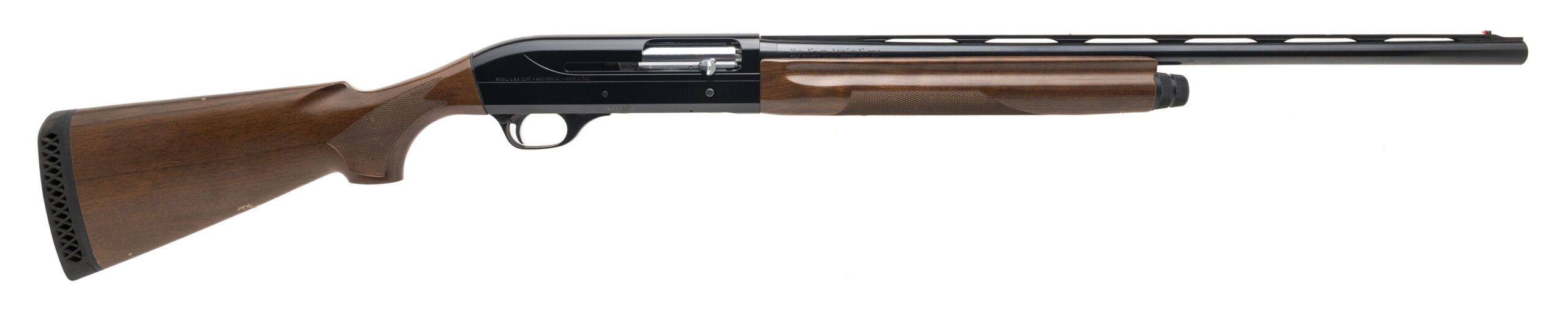 SN: N031256, modern production 20 gauge semi-auto field shotgun with a 24" vent rib barrel, 3" chamber and screw in choke. Blued metal finish, black alloy receiver and checkered walnut furniture with a 14.25" LOP to the original pad. Moderate handling marks and dings on the top and bottom of the stock, bluing is very good and bore is excellent.