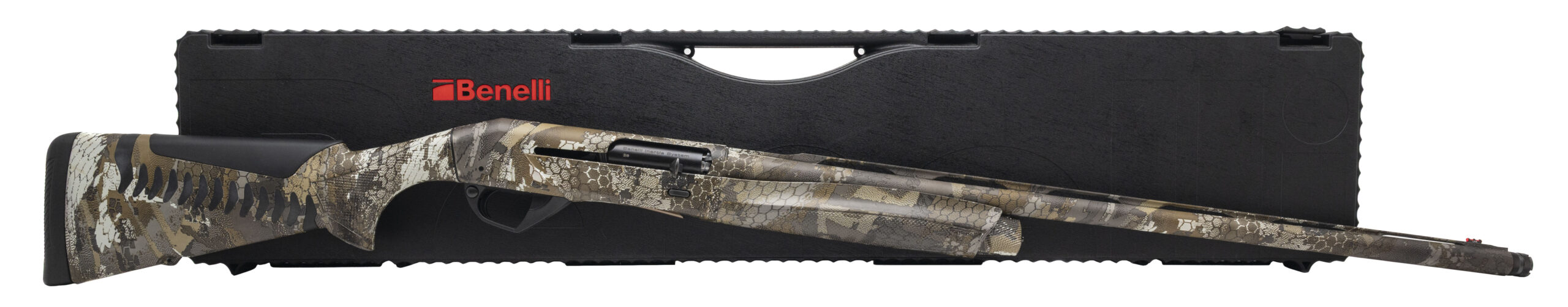SN: U741201Y. Modern production, 12 gauge with a 28" vent rib barrel w/extended removable choke chambered for 2 3/4", 3", & 3 1/2" shells. Bore is excellent. Semi-auto field shotgun with a fiber-optic front sight, and Gore Optifade timber camouflage finish & synthetic stock with a 14.5" LOP. Finish shows light handling marks. Includes additional chokes, and original case. Overall condition is near excellent.