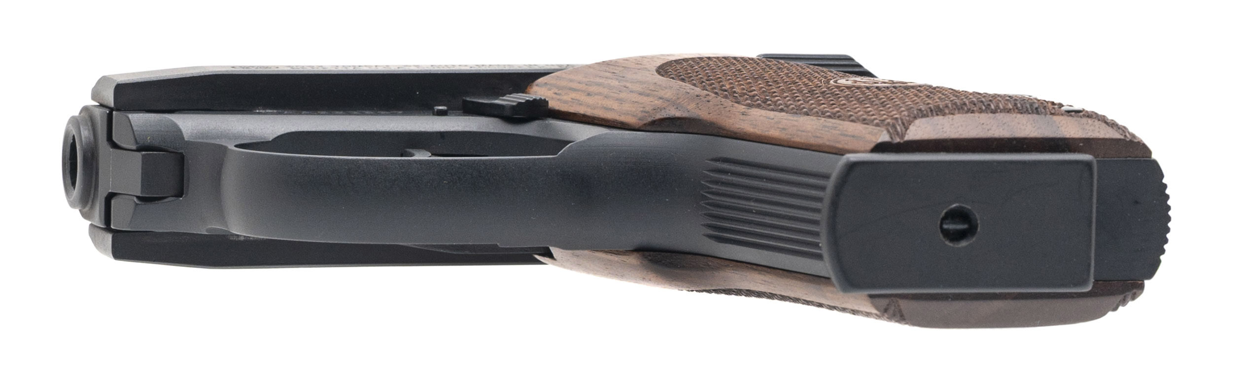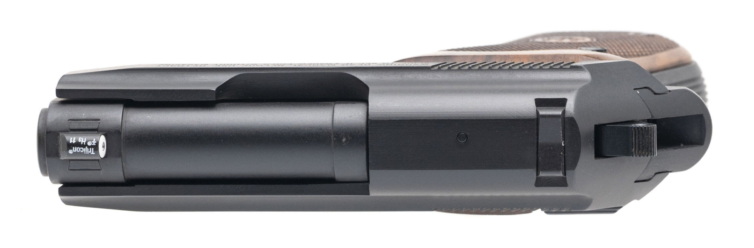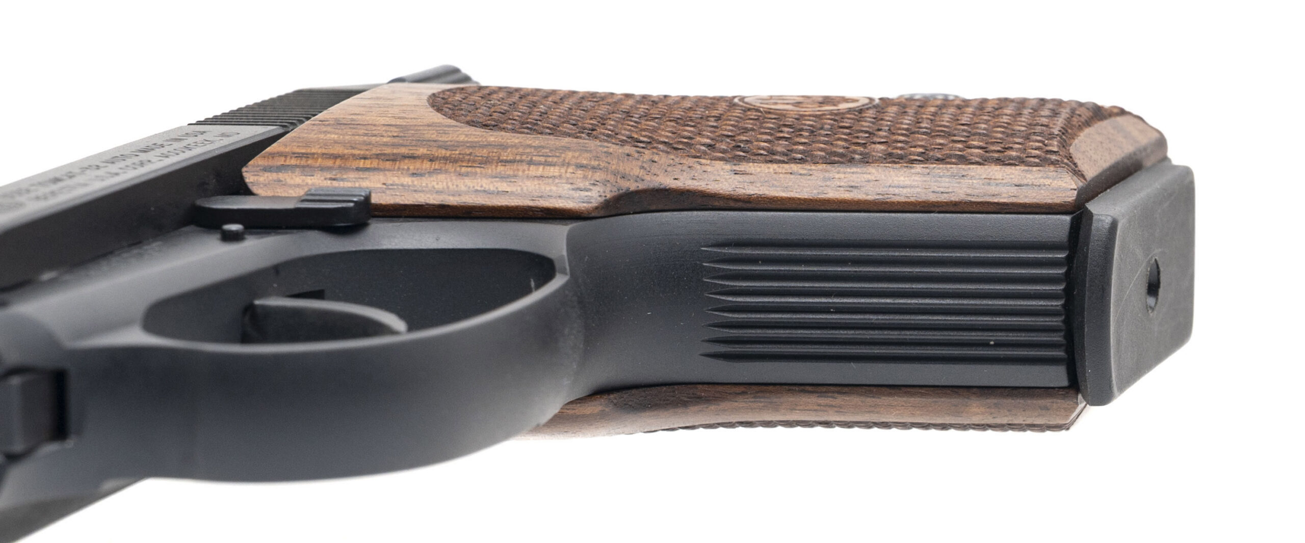 SN: DAA532397. Modern production, .32 ACP with a 2.5" tip-up barrel. Bore is very good. Double-action alloy frame pocket pistol with a Trijicon tritium front sight, manual thumb-safety, matte black finish, and checkered wood grips. Finish shows light handling marks throughout. Overall condition is near excellent.