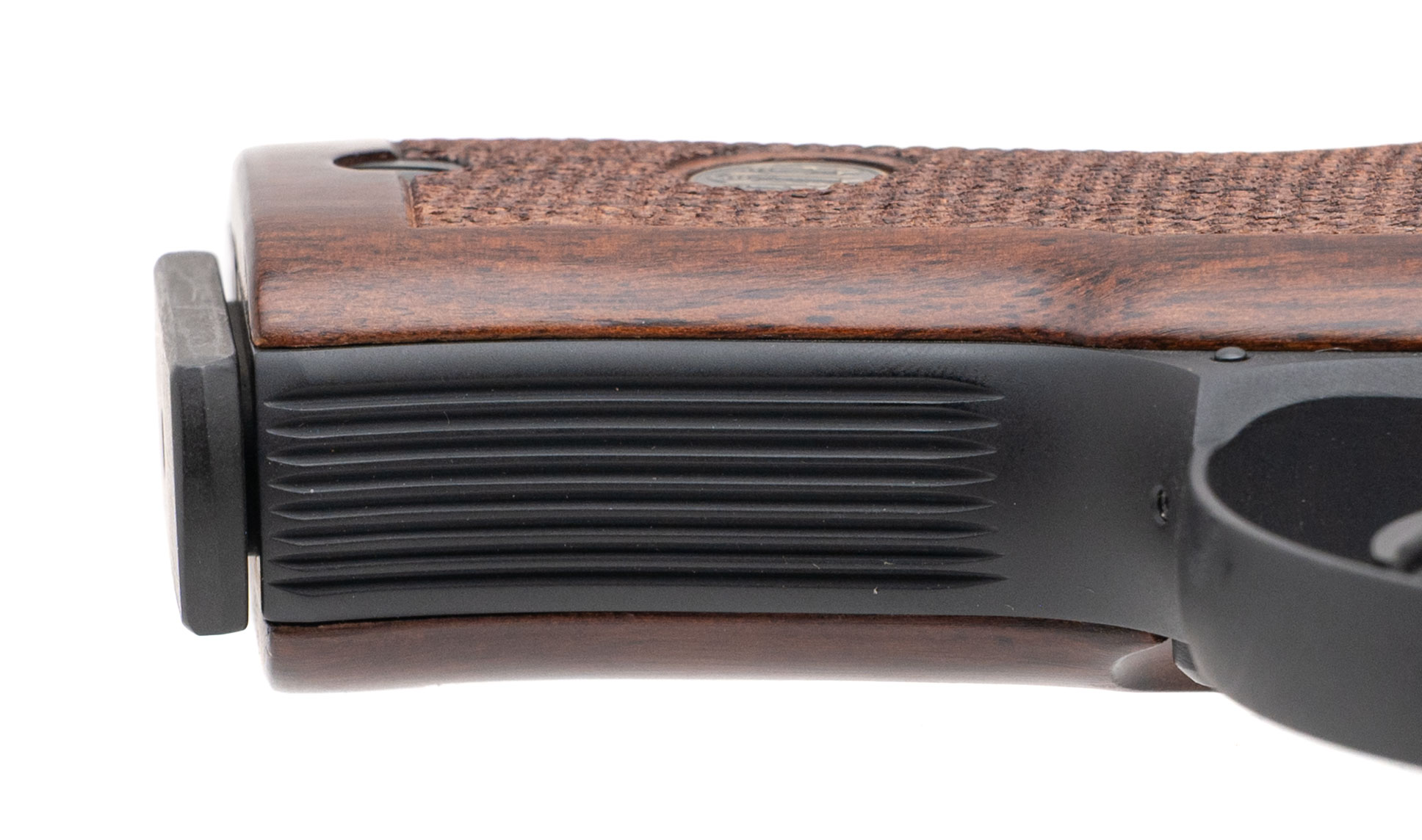 SN: G00624Y. 1990 production, .380 Auto with a 4" tip-up barrel. Rare Italian made double action pistol with checkered wood grips. Overall condition is near excellent. Highly sought after model 86 with factory box & case included and extra magazine.
