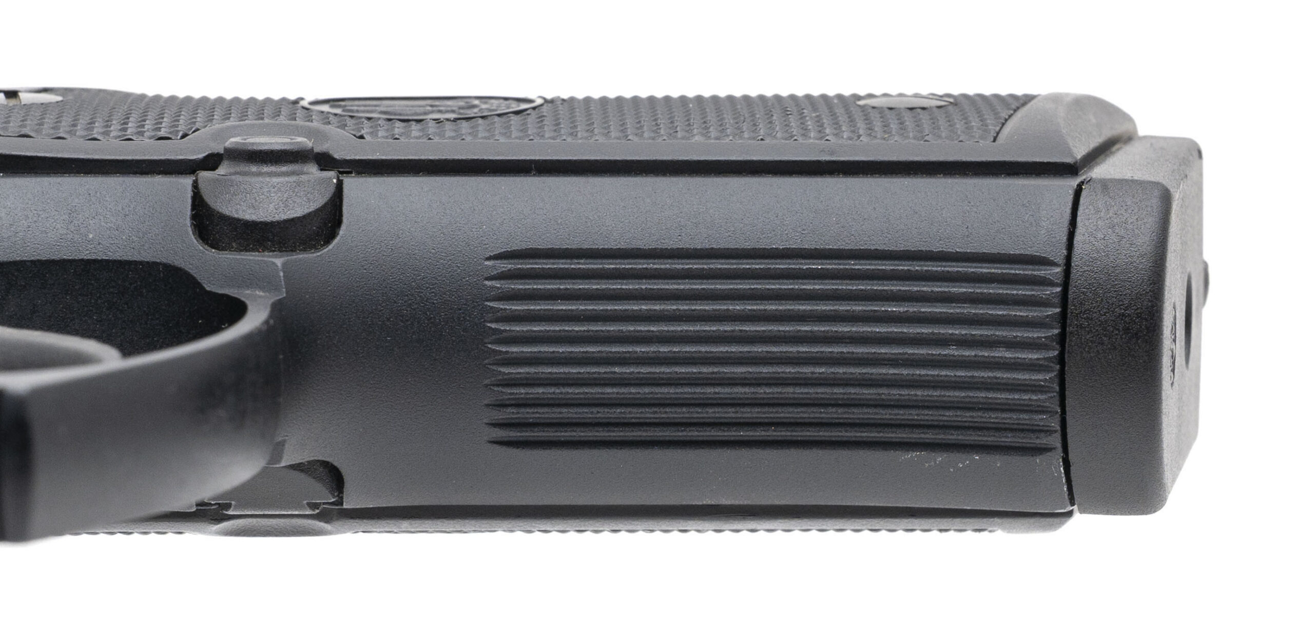 SN: A030865Z. Modern production, 9mm with a 5" barrel. Bore is excellent. Full size alloy frame double-action pistol with an ambidextrous manual decocker, 3 dot sights, matte black finish, and checkered polymer grips. Finish shows minor marks throughout. Overall condition is very good. Includes 2 additional magazines, and original case.