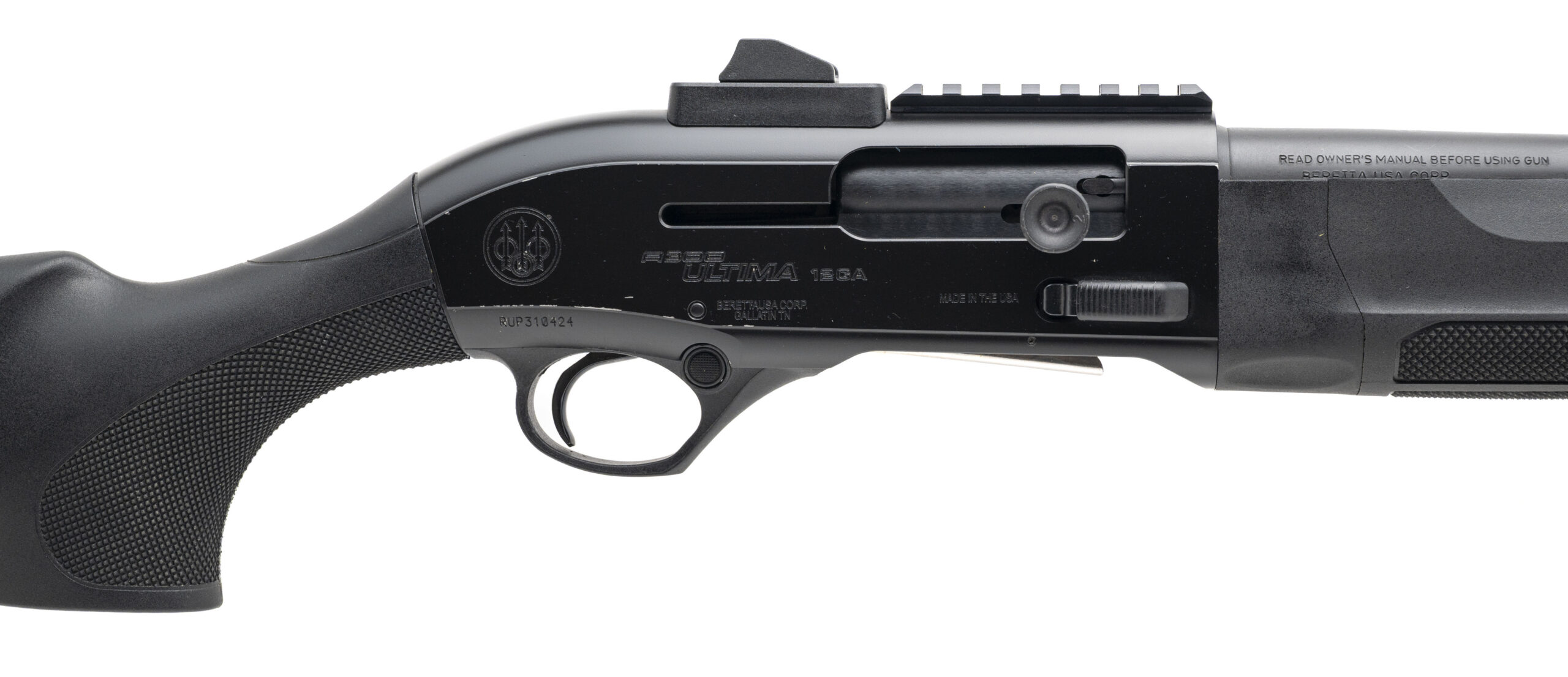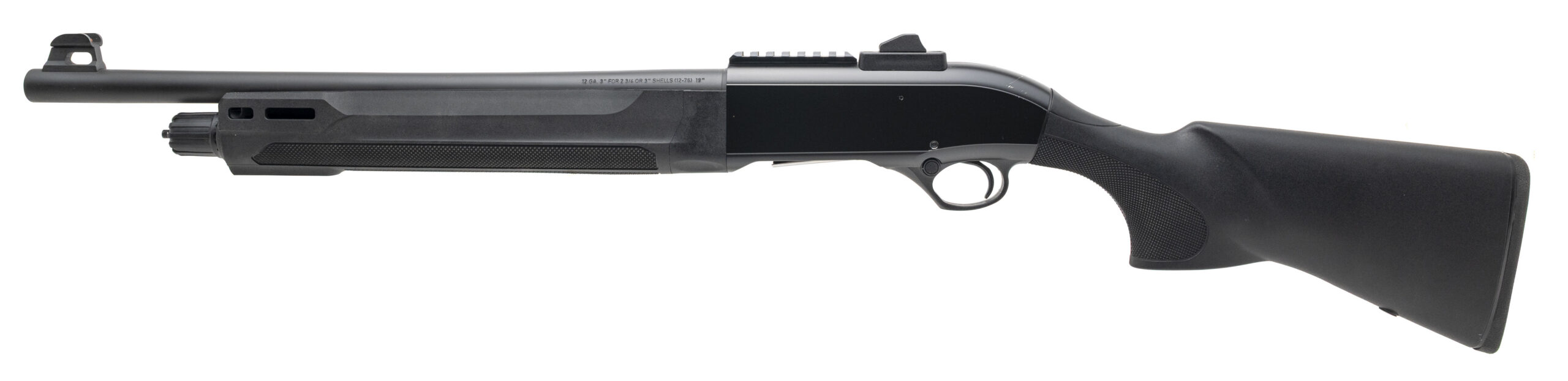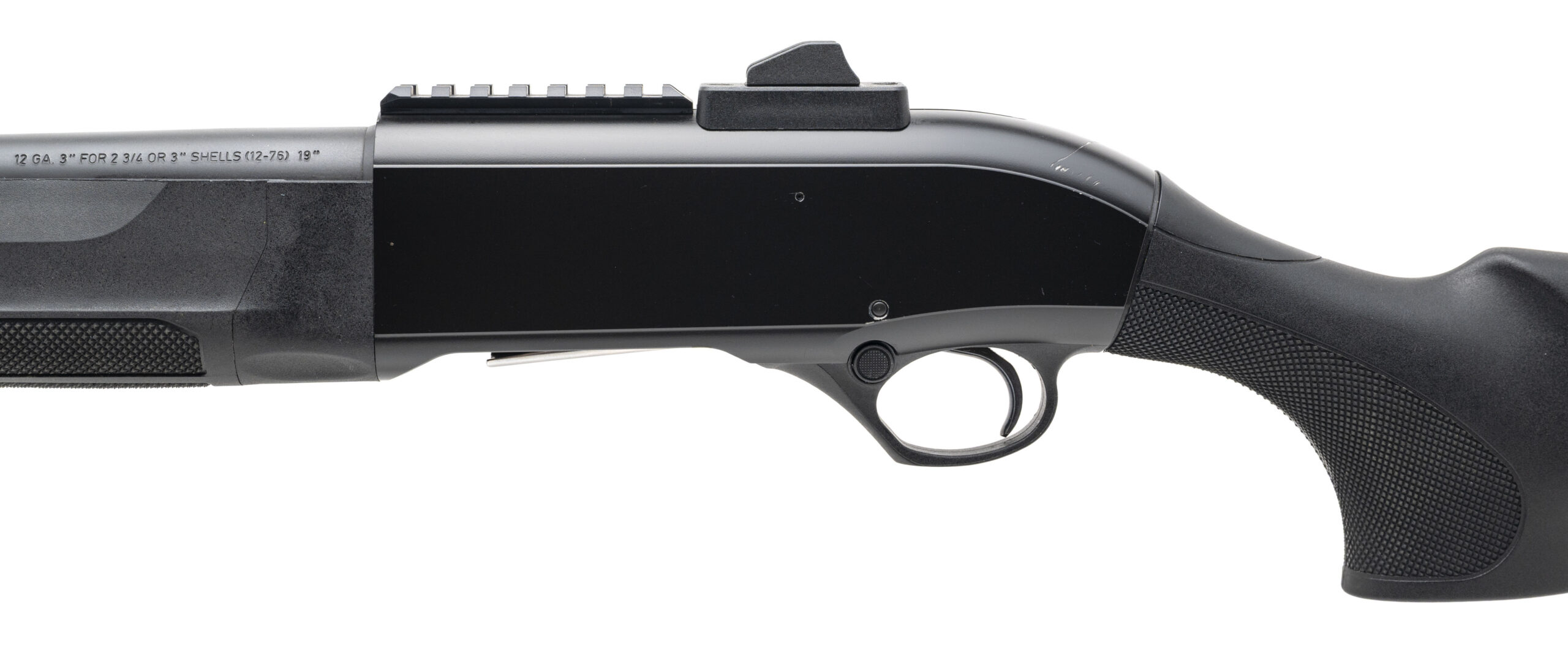SN: RUP310424. Modern production, 12 gauge with a 19.1" barrel w/removable Imp. Cyl. choke chambered for 2 3/4" & 3" shells. Bore is excellent. Semi-auto tactical shotgun with a hooded fiber-optic front sight, ghost ring rear sight, black anodized finish, and textured black synthetic stock. Finish shows light marks. Overall condition is very good.