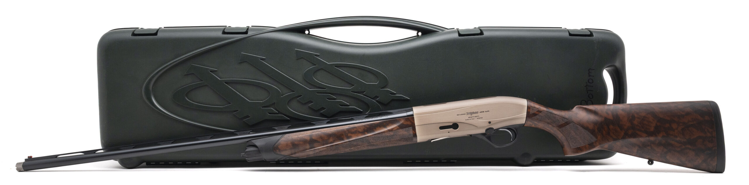 SN: XA139004. Modern production, 28 gauge with a 28" vent rib barrel w/extended removable choke chambered for 2 3/4" shells. Bore is very good. Semi-auto field shotgun with a fiber-optic front sight, bronze finished receiver, blue finished barrel, and checkered wood stock & forend with a 14.5" LOP. Finish shows minor marks, most notably to the ejection port. Includes additional chokes, and original case. Overall condition is very good.