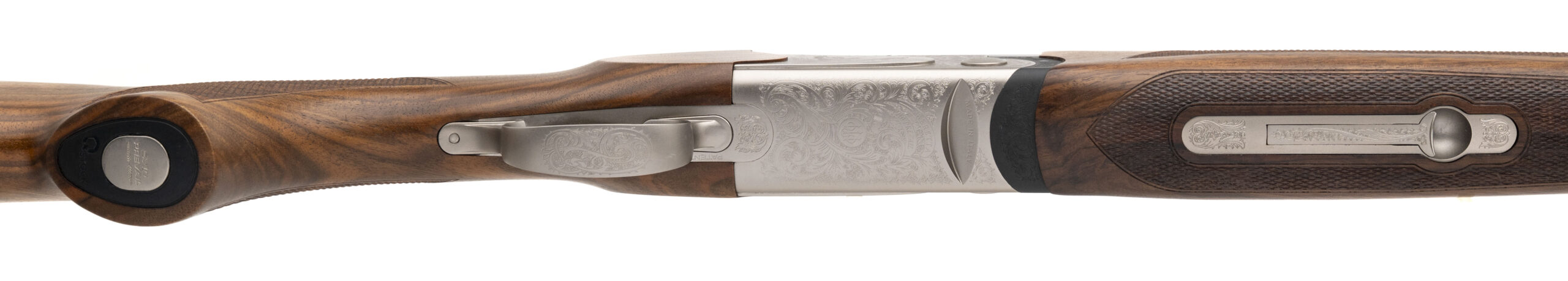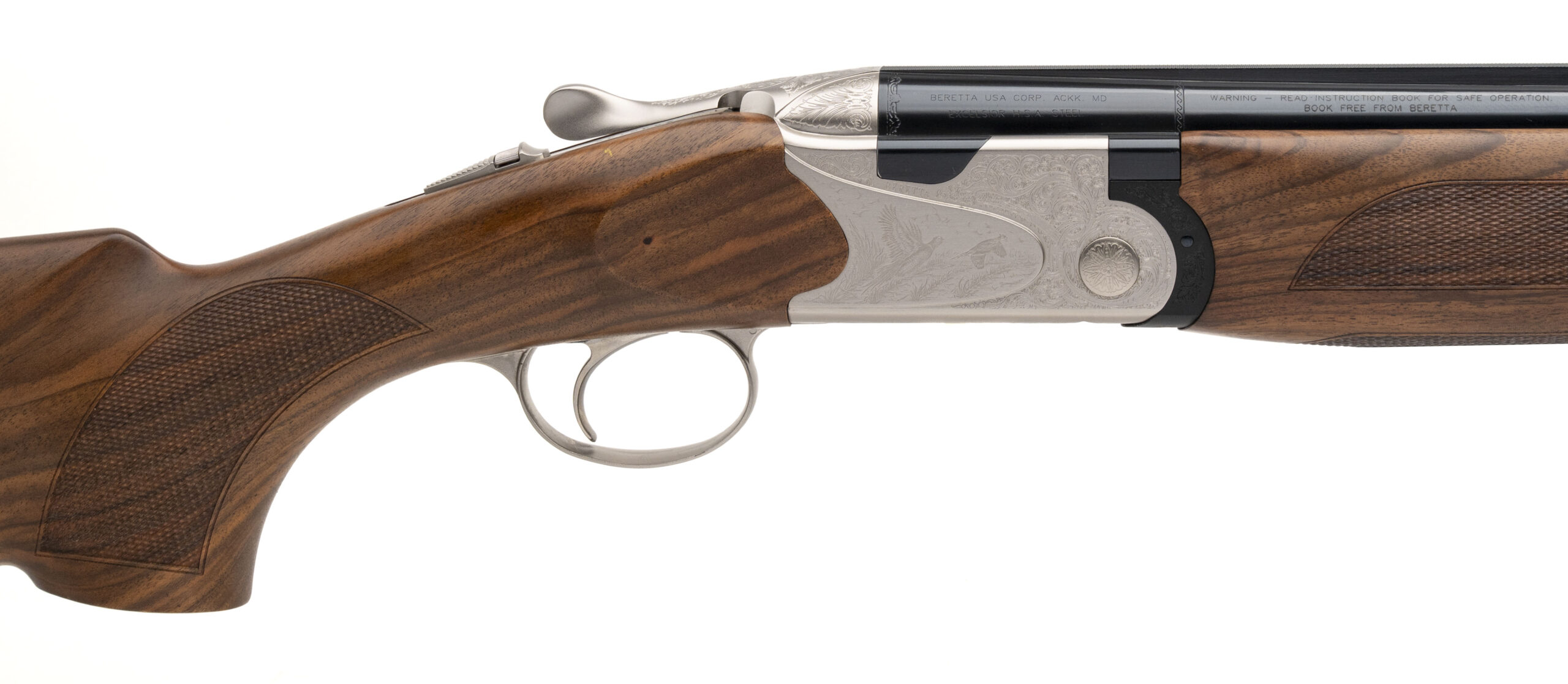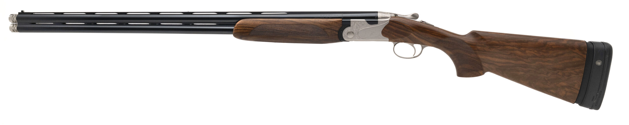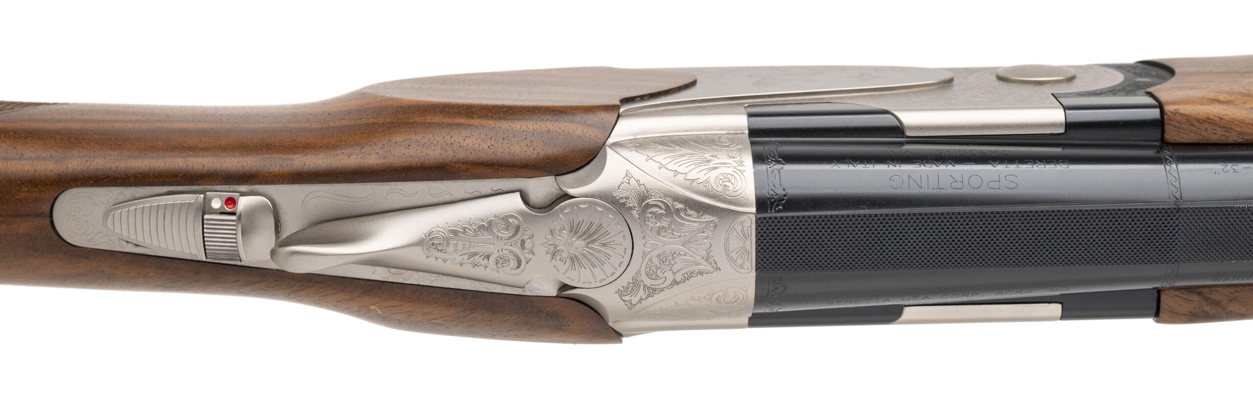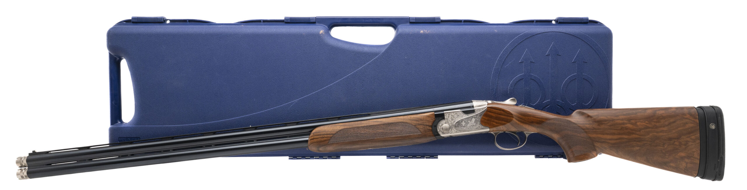 SN: Z03013S. Modern production, 12 gauge with 32" vented mid-rib Barrels chambered for 3" Shells w/extended removable chokes. Bores are excellent. Over/under sporting shotgun with engraved stainless receiver, blue finished barrels, and checkered wood stock & forend w/kickoff device & a 14.5" LOP. Stock shows minor handling marks. Includes additional chokes, and original case. Overall condition is near excellent.