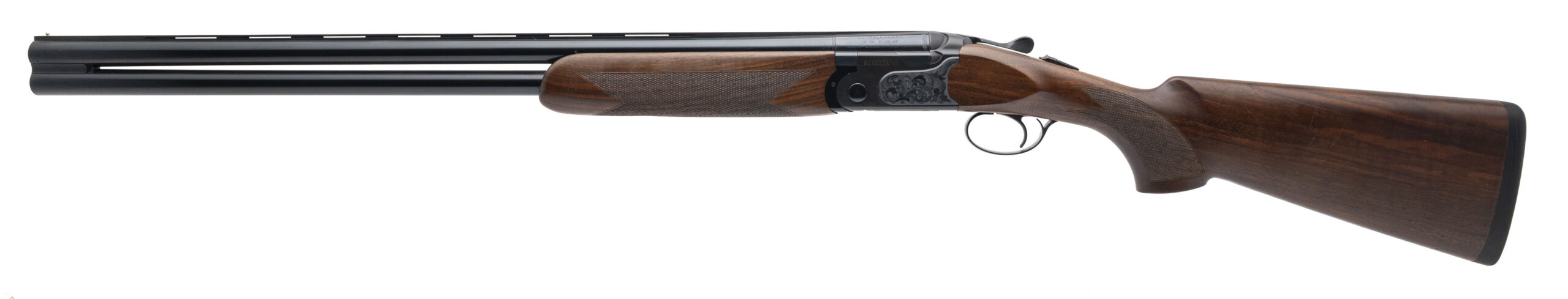 SN: F64271X. Modern production. Over/under shotgun chambered for 12 Ga. 2.75 and 3" shells with 28" barrels. Overall condition is great with some minor handling wear. Specifically designed to be a lightweight option with the same strength and balance as other Beretta over/unders. techno-polymer receiver inserts, Extralight® recoil pad, and Steelium Optima-Bore® HP barrels.