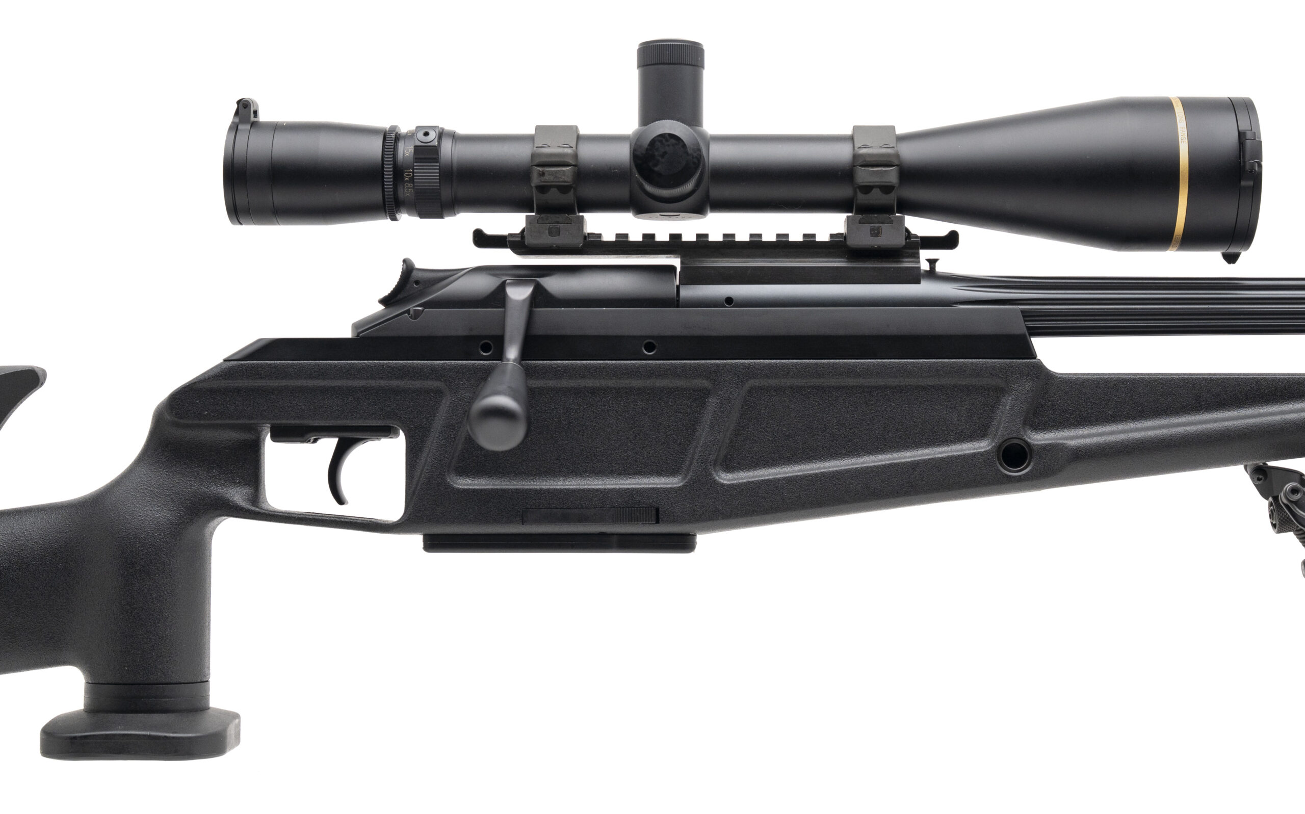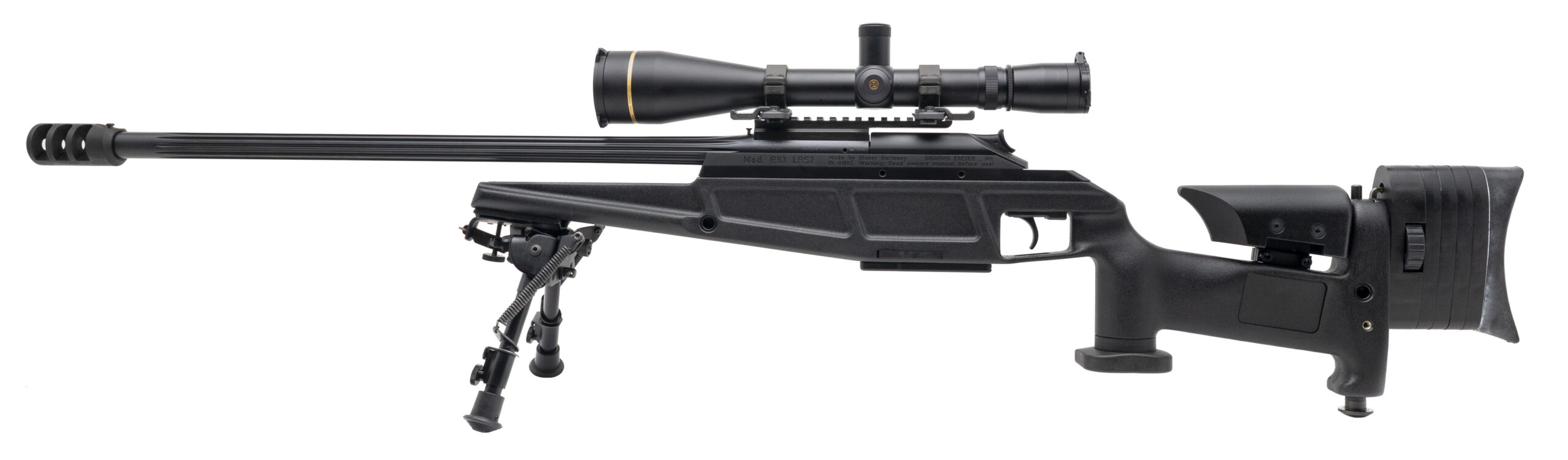 SN: BL-01095. Modern production, .308 Win & .223 Rem with 24" fluted/threaded barrels. Bores are bright with strong rifling. Straight-pull precision rifle. This rifle features a .308 barrel w/Leupold VX-III 8.5-25x50mm long range scope, a .223 barrel w/Leupold Mark 4 3.5-10x40mm scope, Harris bipod, and a sling. Overall condition is excellent. Comes with case, and one extra magazine per caliber.