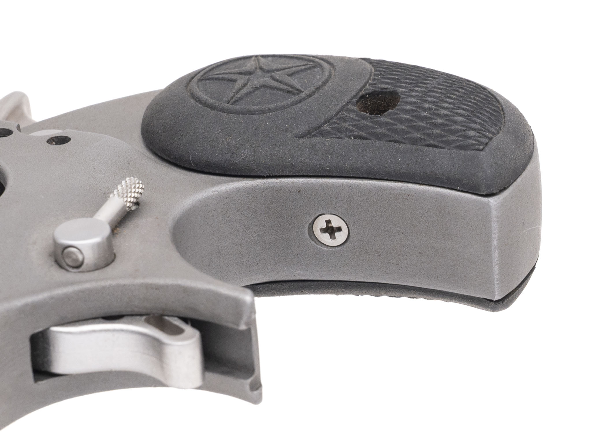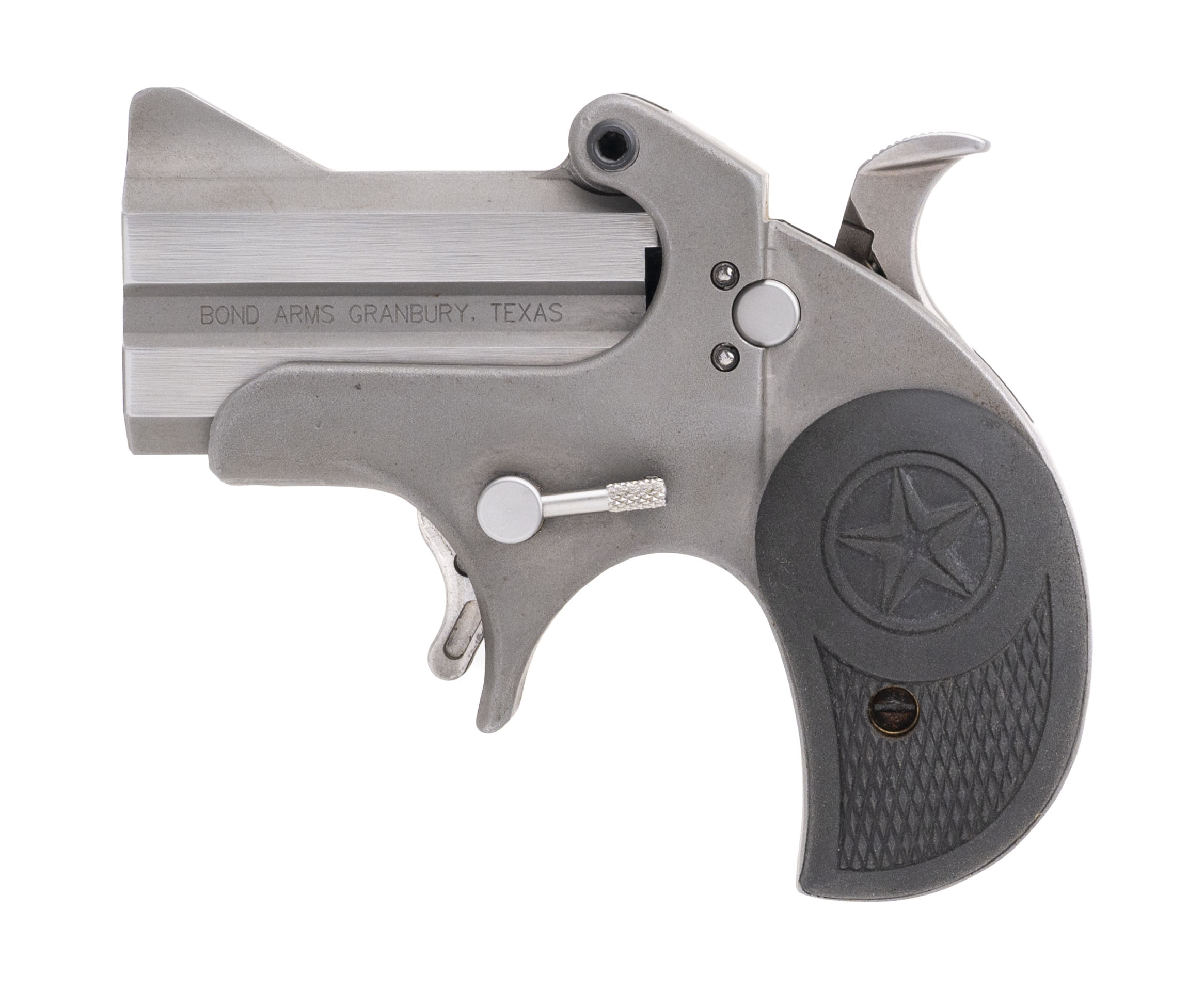 SN: 220802. Modern production, 9mm with 2.5" barrels. Bores are very good. Texas made derringer pistol with stainless steel frame, and checkered rubber grips. Frame & finish show minor handling wear. Overall condition is very good.